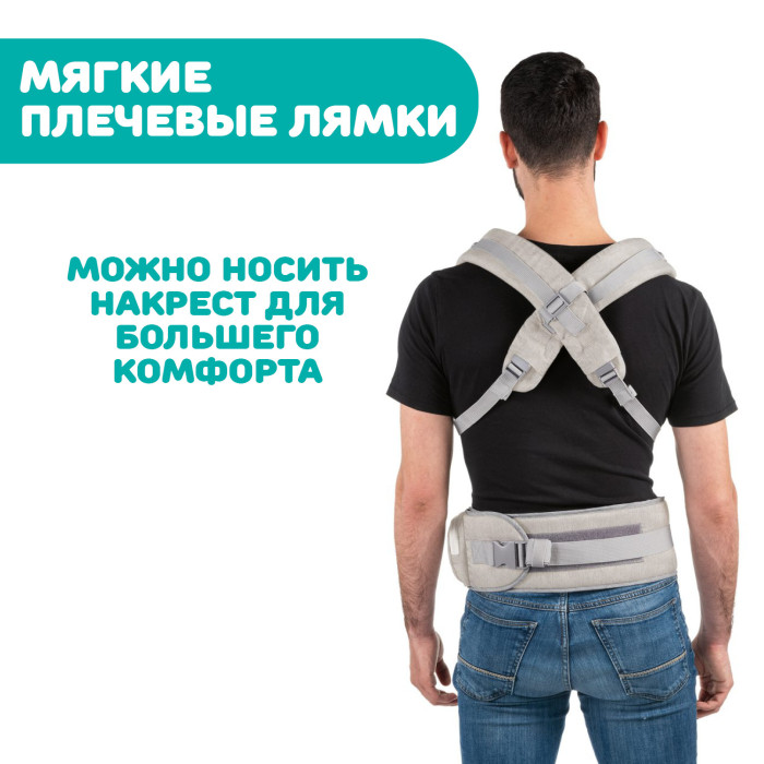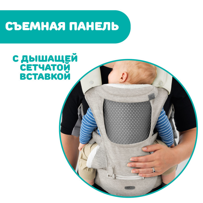 Chicco Hip Seat Carrier дает возможность носить ребенка в самых разных положениях в зависимости от возраста или предпочтений малыша (3м+ лицом к родителю, 6м+ спиной к родителю, 6м+ на спине у родителя).