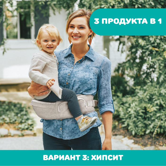 Твердая база-сидение, используемая без пристегивающейся переноски-кенгуру, служит продолжением бедра родителя. Идеально придерживать ребенка только одной рукой, сохраняя его правильное положение.