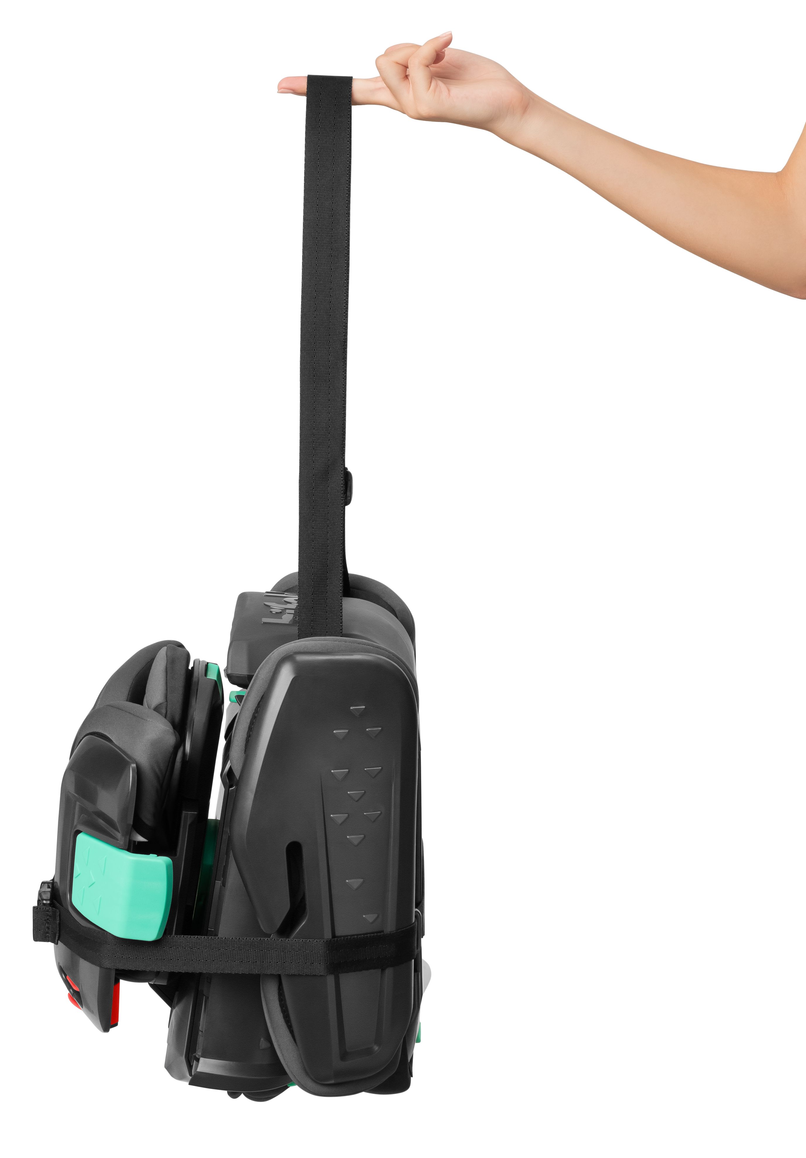 Так же очень важным является уникальное сложение кресла. Оно складывается до очень маленьких компактных размеров и у него есть специальный ремень для переноски на плече. Дополнительно можно приобрести специальную сумку для переноски. С таким креслом удобно путешествовать, его можно брать как ручную кладь в самолет, что очень удобно если в путешествии вы планируете пользоваться арендованным авто.