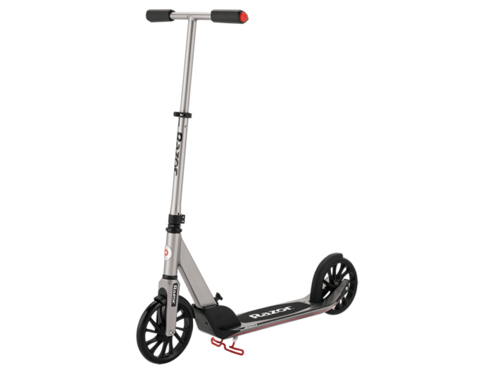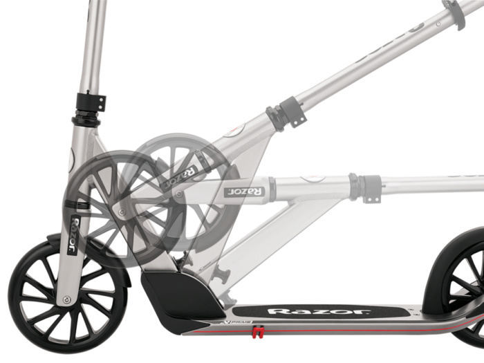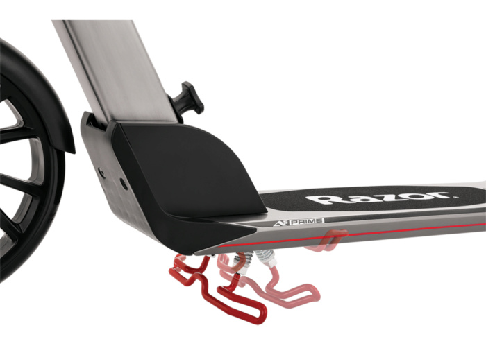 Самокат для города Razor A5 Prime (рейзер а5 прайм ) - стильный, современный транспорт для детей от 8 лет и взрослых для легкого и приятного перемещения по городу. Премиум самокат выполнен по самым последним трендам дизайна в сочетании с высоким качеством и безопасностью товара. Razor A5 Prime это быстрый и легкий самокат с запатентованной системой сложения, которая исключает люфт руля. Удобный классический тормоз -крыло, которым удобно контролировать скорость или быстро останавливать самокат. Мягкие резиновые ручки с противоскользящим эффектом и удобная система регулировки руля по высоте. Самокат оснащен большими полиуретановыми колесами 200 мм, удобной и широкой платформой для ног и удобной подножкой.