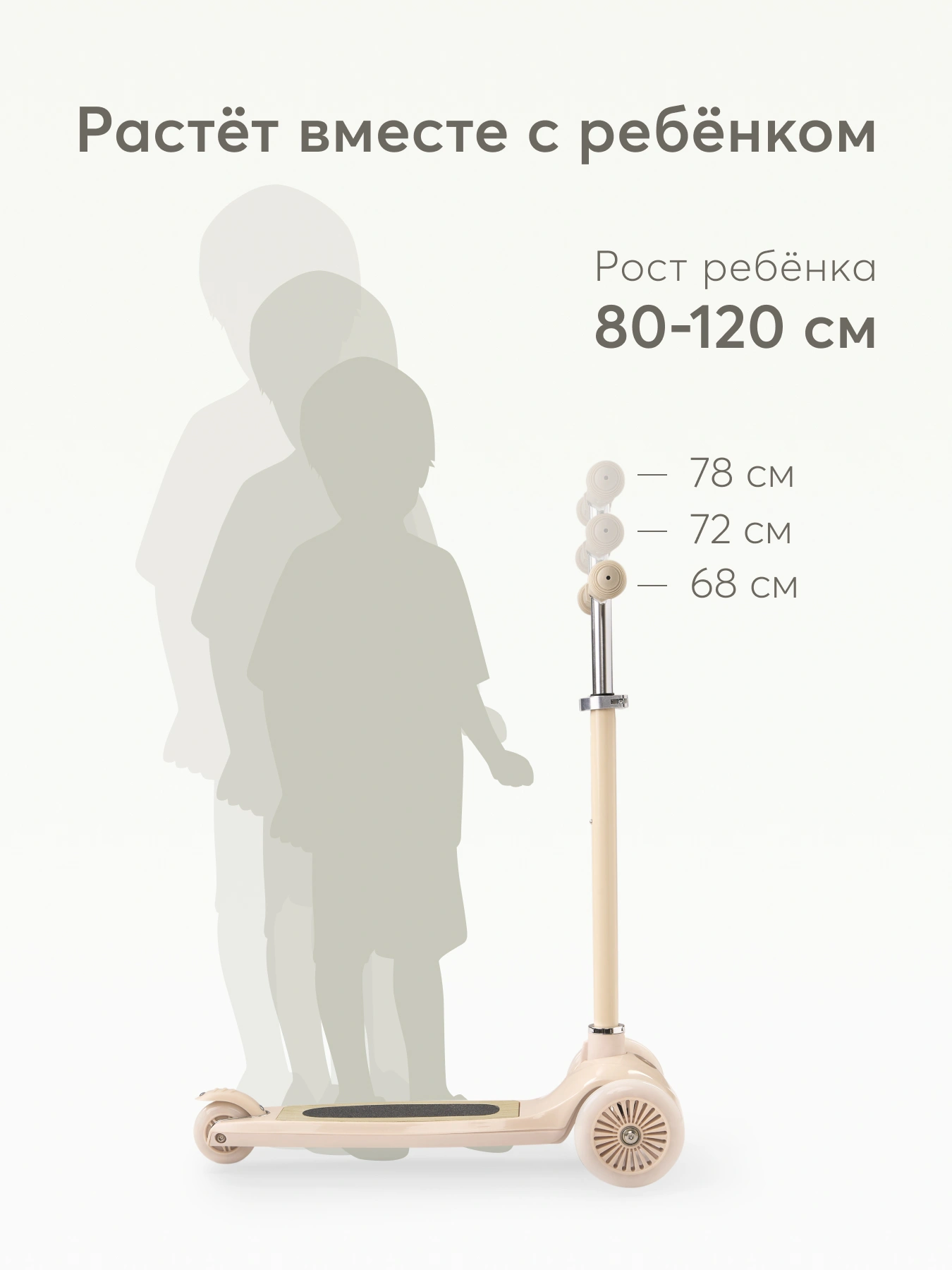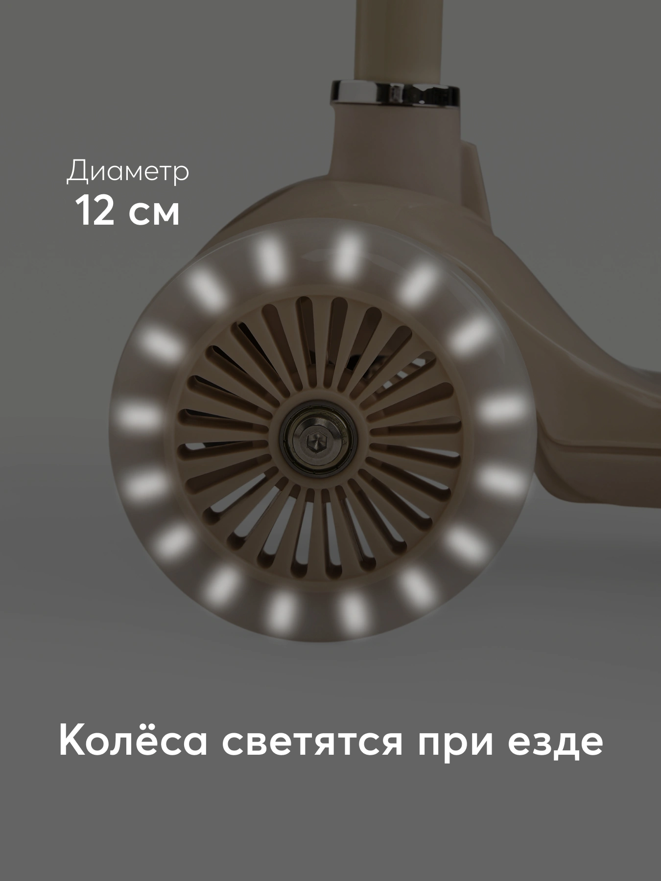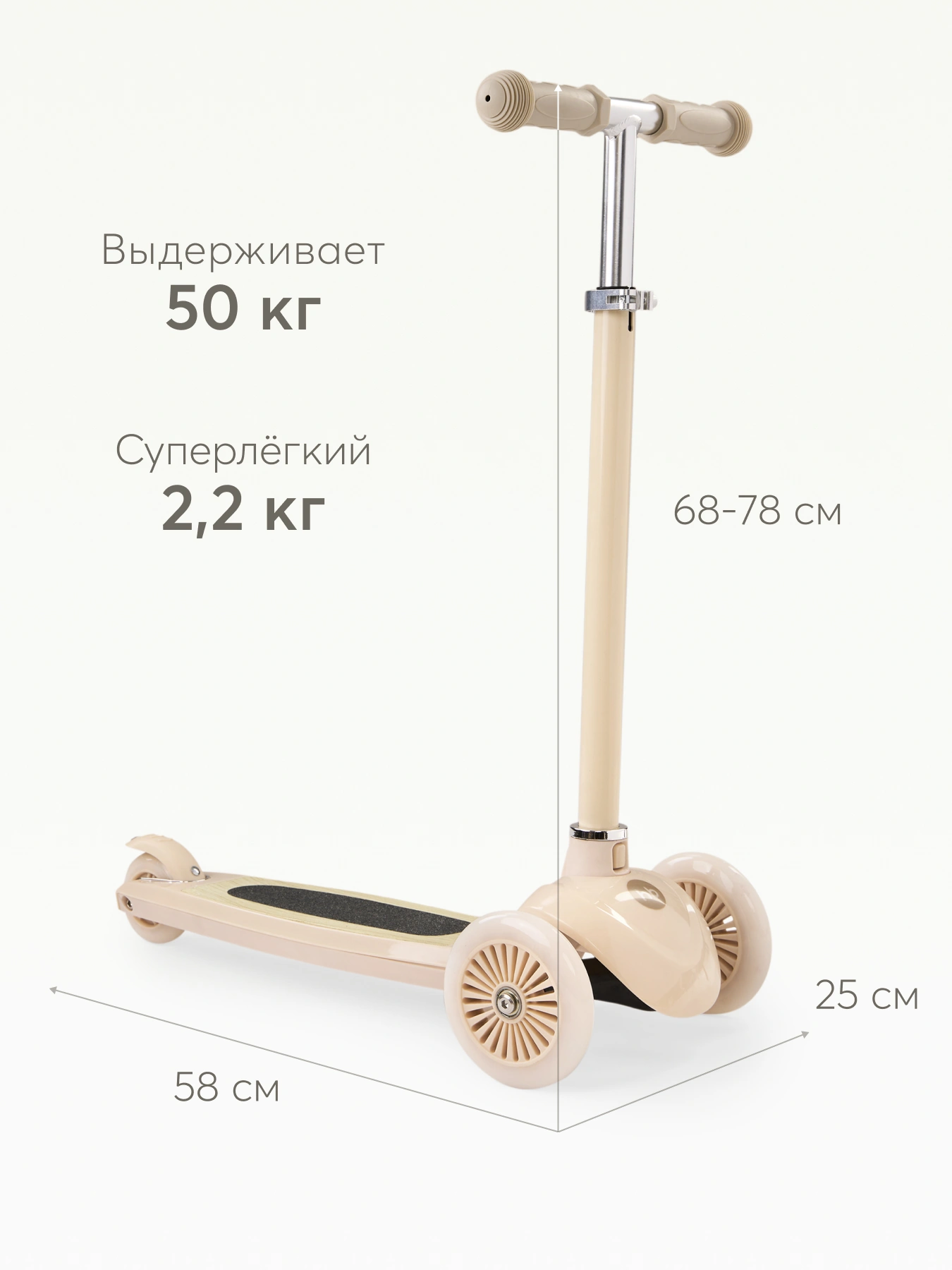 Быстрый и легкий самокат буквально скользит по дороге. Легкий ход нравится детям и дарит хорошее настроение. Колеса светятся, благодаря чему ребенок заметен издалека в темное время года. Удобные прорезиненные ручки и рифленая поверхность деки защищают от скольжения. Управление интуитивно понятно: поворот осуществляется наклоном руля вправо или влево. Задний тормоз позволяет плавно остановить движение. Высота руля регулируется, потому самокат прослужит несколько лет. В комплекте модная корзинка и яркие наклейки, которые позволят сделать транспорт максимально стильным.