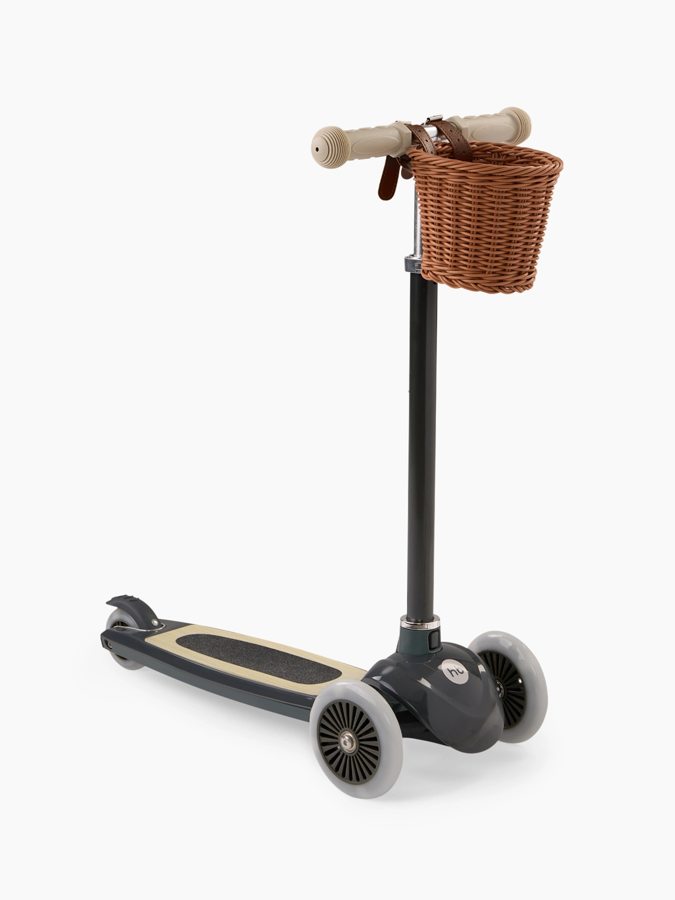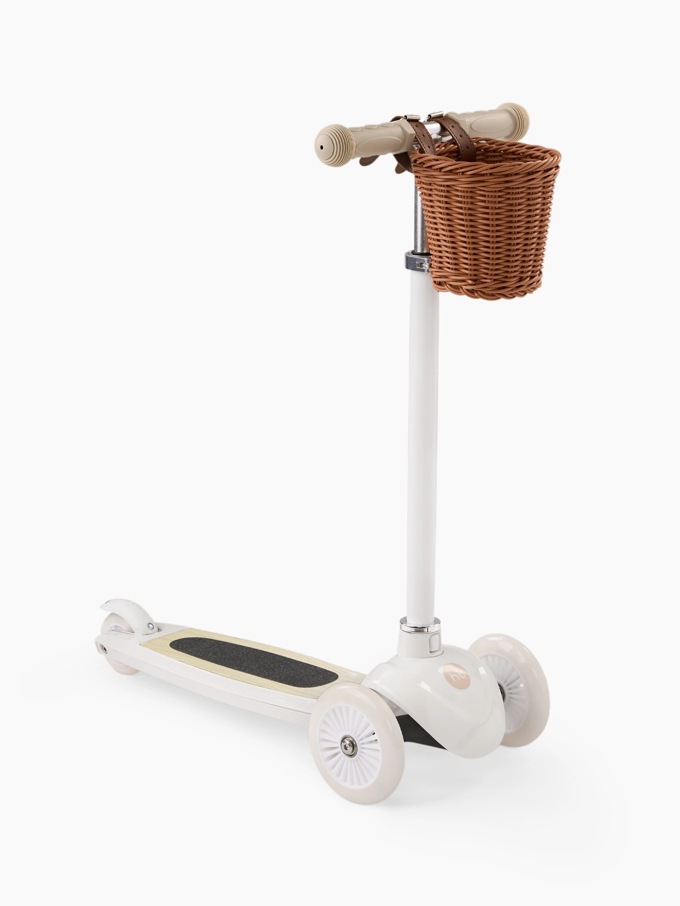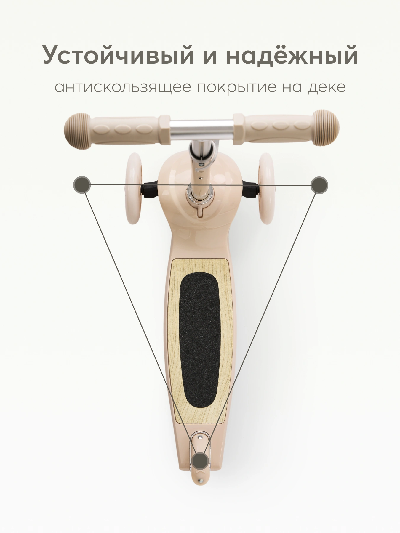 Быстрый и легкий самокат буквально скользит по дороге. Легкий ход нравится детям и дарит хорошее настроение. Колеса светятся, благодаря чему ребенок заметен издалека в темное время года. Удобные прорезиненные ручки и рифленая поверхность деки защищают от скольжения. Управление интуитивно понятно: поворот осуществляется наклоном руля вправо или влево. Задний тормоз позволяет плавно остановить движение. Высота руля регулируется, потому самокат прослужит несколько лет. В комплекте модная корзинка и яркие наклейки, которые позволят сделать транспорт максимально стильным.