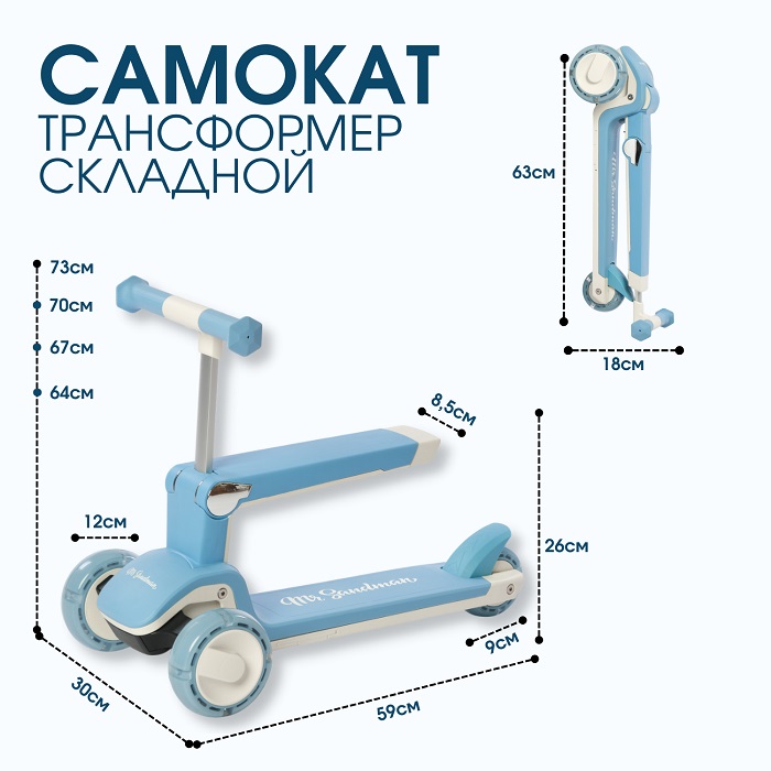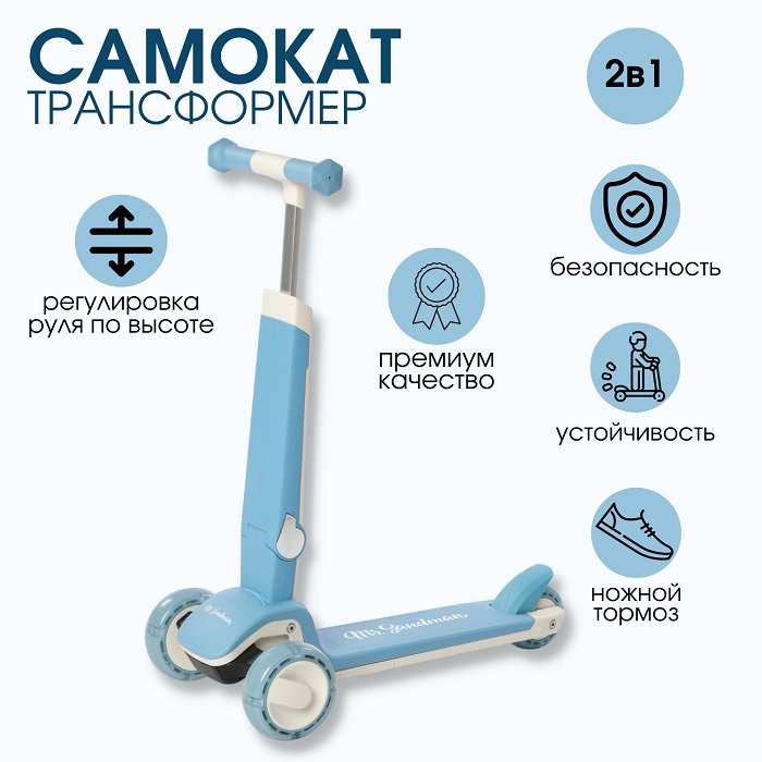 Самокат Mr Sandman HB-8B 2в1 (Мистер сандман) - многофункциональный детский самокат - каталка - беговел для ребенка от 1 годика. Идеальный первый транспорт для вашего ребенка.