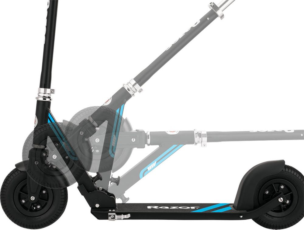 Razor A5 Air продается в обновленной версии с новыми ручками, которые не будут греметь при езде, и новый механизм сложения, который полностью исключает любые люфты. Новая, надежная фиксация всех подвижных элементов.