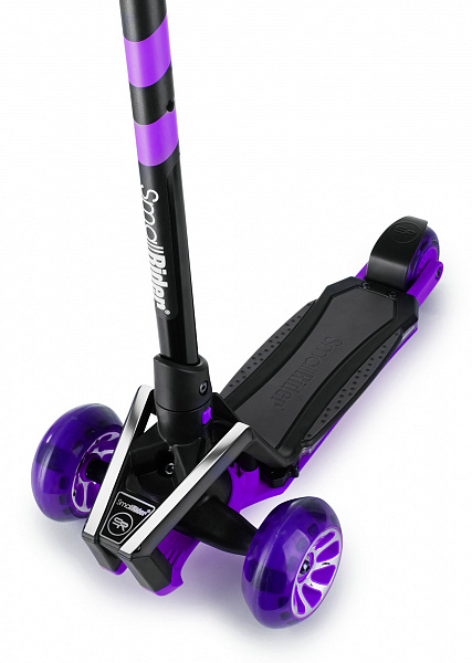 Самокат "Premium Pro" значительно меньше подвержен заваливанию благодаря своим мощным колесам, правильной балансировке и геометрии конструкции.