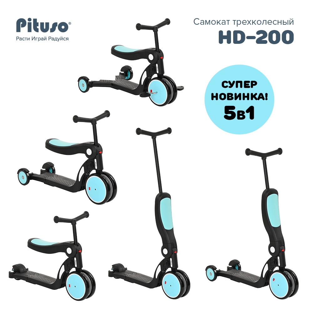 PITUSO HD-200 5в1 станет отличным развлечением для вашего ребенка во время прогулки. Вы сможете прямо во время прогулки менять, например, велосипед на беговел и наоборот за считанные минуты.