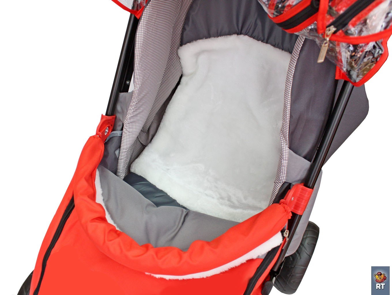 - В комплекте вместительная сумка для мамы, очень стильная и созданная с любовью: внутри- множество карманов. В комплекте - меховые варежки для рук на стальных кнопках.