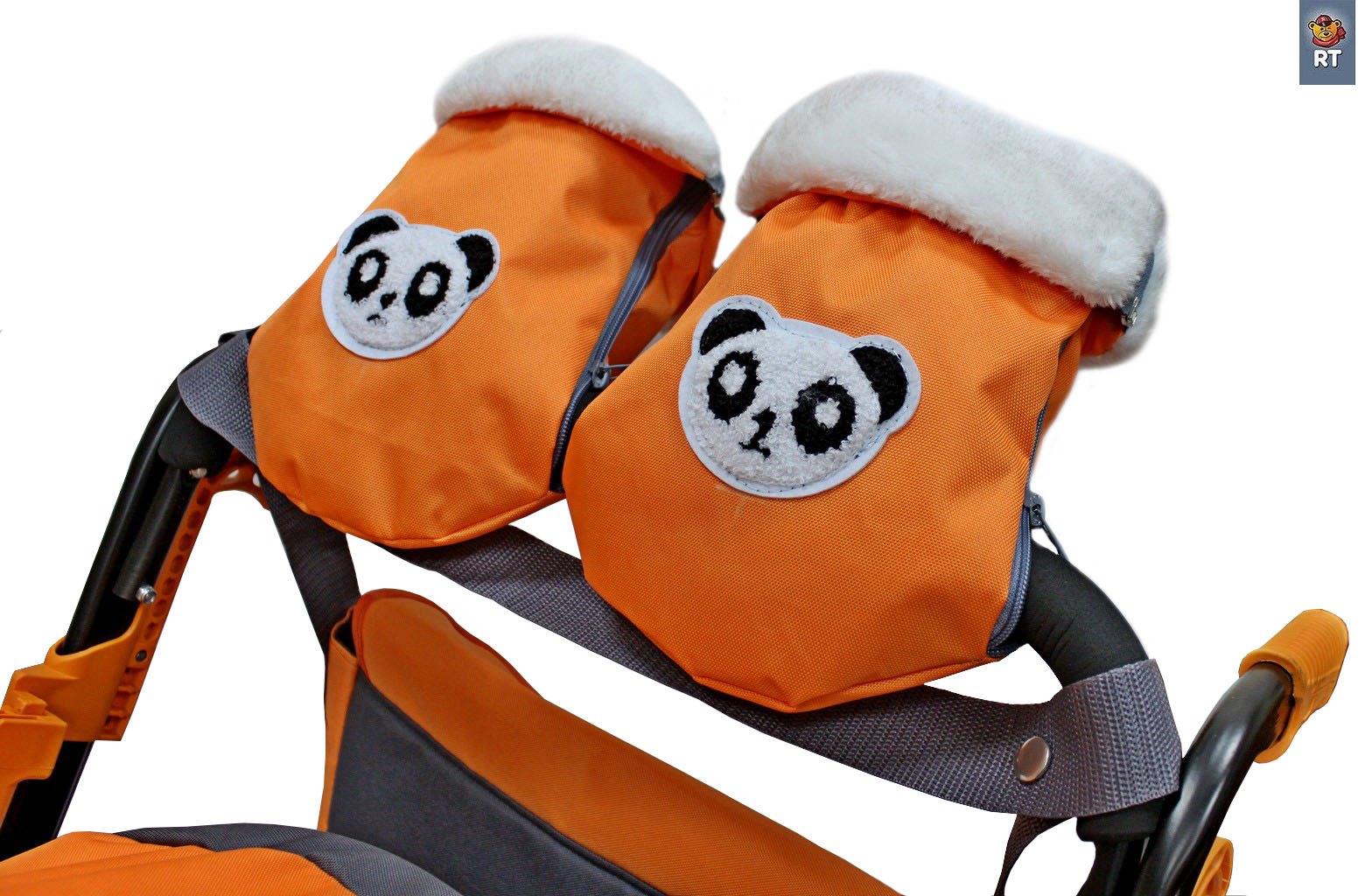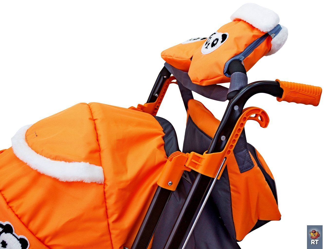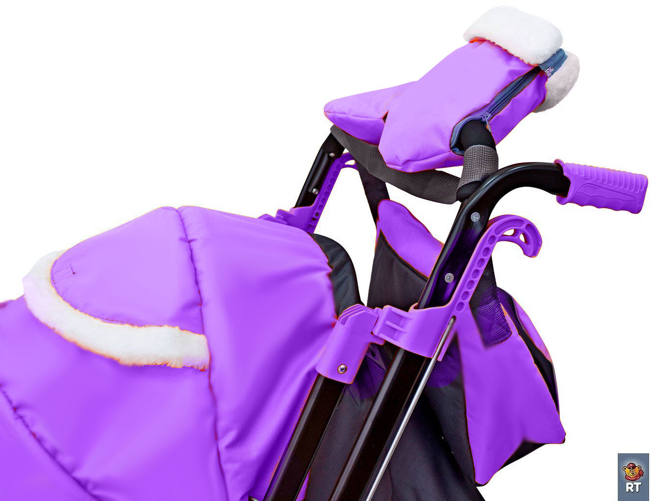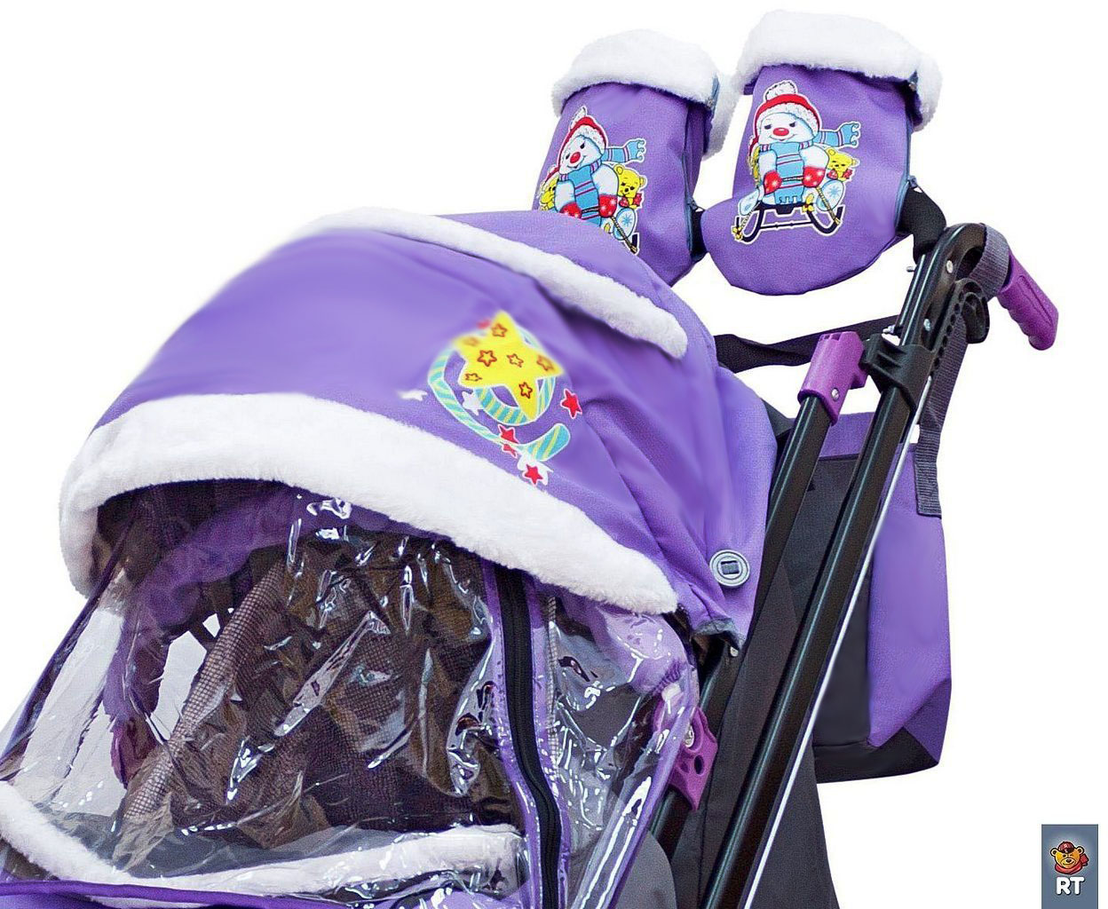 В комплекте: вместительная сумка для мамы, очень стильная и созданная с любовью: внутри- множество карманов и меховые варежки для рук на стальных кнопках.