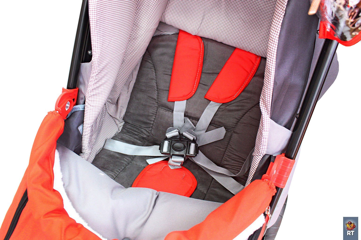 - Внутри – съемный меховой матрасик с 5-ти точечными ремнями безопасности.
