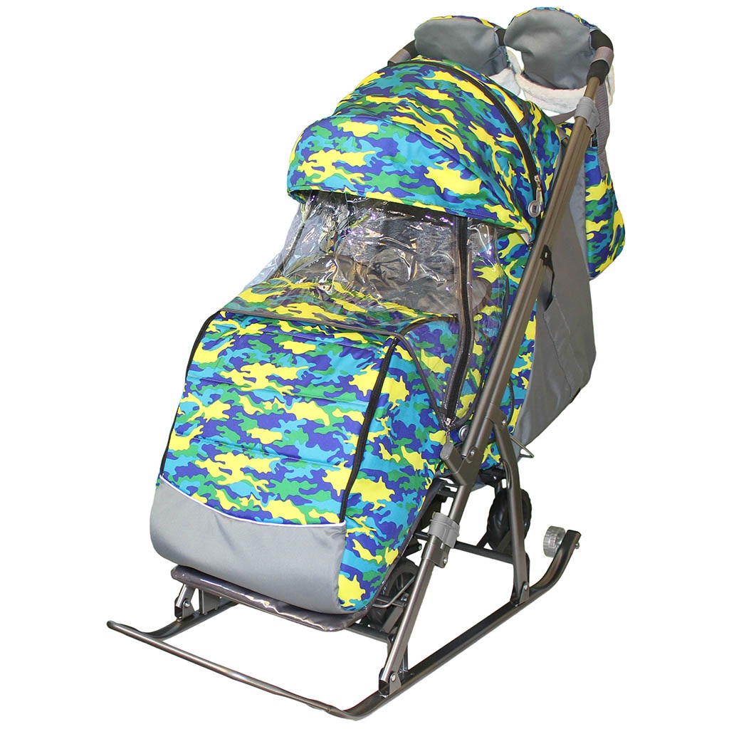 Санки коляска SNOW GALAXY Kids-3-1 (Сноу гелакси кидс 3-1) - складные санки-коляска с 4 прорезиненными колесами и очень надежным педальным механизмом. Для наилучшего передвижения по асфальтированной поверхности на санках-колясках предусмотрены сверхпроходимые прорезиненные колеса на педальном механизме. Достаточно нажать на него ногой и переставить санки на колеса. Эксклюзивная покраска рамы серой краской пр-во Германия, которая блокирует ржавчину и коррозию металла в течении срока использования. Созданная по самым современным технологиям, эта покраска выглядит очень эффектно. Перекидная ручка-толкатель: ребенок может находиться в 2-х положениях: "лицом к дороге" и "лицом к маме. Полностью раскрывающаяся, съемная утепленная попона с боковыми защитными ветровиками закрывает ребенка от ветра. Чехол - с 2 молниями по бокам для удобного открывания с обеих сторон. Вы сможете вытащить ребенка с любой стороны, открыв одну из двух молний. Большой капюшон как у настоящей коляски. Высокий складной 3-секционный капюшон с увеличенной высотой по спинке позволяет чувствовать себя комфортно малышу в шапке с помпоном. На капюшоне есть смотровое окно для наблюдения за ребенком из гибкого силикона- не лопнет на морозе и не деформируется при перепаде температур. Завышенная спинка для большего пространства над головой малыша. Спинка опускается до горизонтального положения с помощью необычного крепления- рычага сзади спинки- очень надежная и прочная система. 3 положения спинки: сидячее, полугоризонтальное, горизонтальное. Широкое посадочное место 41 см. Сиденье обтянуто искуственной замшей- Алькантара. Износостойкая, бархатистая ткань, приятная на ощупь, которую часто применяют в автомобильном тюнинге. Подножка для ног с регулируемым углом наклона, включая горизонтальное, позволяющее ребенку в положении лежа комфортно вытягивать ножки. Водоотталкивающая непродуваемая ткань Оксфорд с тефлоновой пропиткой- противогрязевая защита. Легко моется и стирается. Капюшон и попона украшены белым мехом- это очень красиво. Внутри – съемный меховой матрасик с 5-ти точечными ремнями безопасности. Обработка- светоотражающий кант. Рама- высокопрочный облегченный стальной каркас. Сплющенные полозья 30 мм будут легко скользить по любым дорогам города. В комплекте вместительная сумка для мамы, очень стильная и созданная с любовью: внутри- множество карманов. В комплекте - рукавицы для рук с мехом на стальных кнопках. На капюшоне- съемный дождевик на молнии из ветрозащитной прозрачной пленки. Санки предназначены для перевозки детей от 8 месяцев. В сложенном виде санки компактны и удобны для хранения и провоза в общественном транспорте. Санки- коляска упакованы в полиэтилен и картон. Их легко содержать в чистоте и удобно хранить от зимы до зимы.