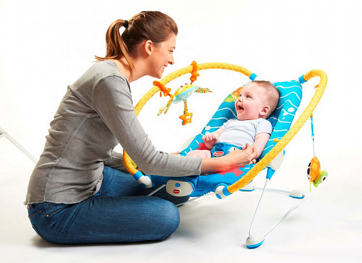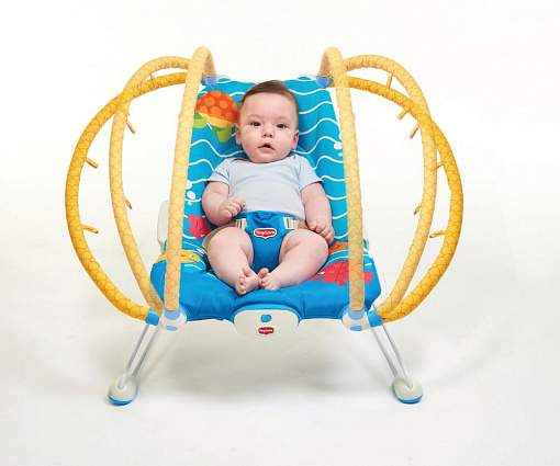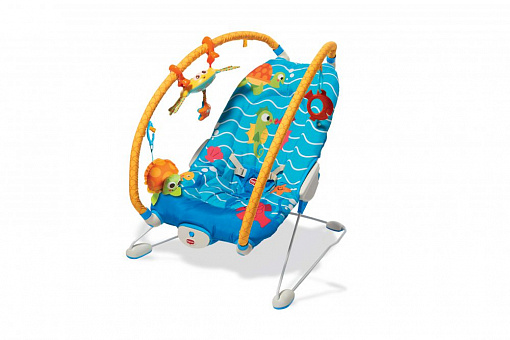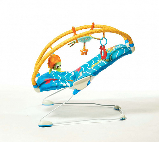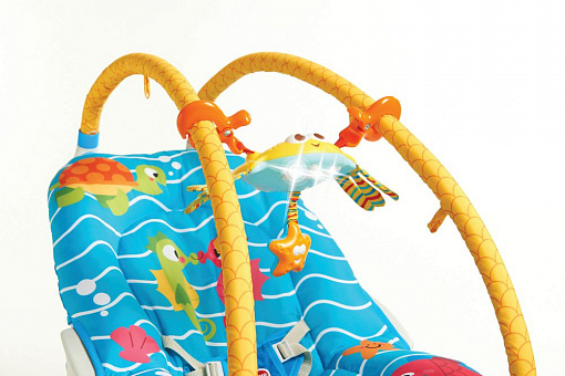Шезлонг баунсер Tiny Love Подводный мир (Тини Лав) - увлекательная игрушка -шезлонг, которая на долгое время займет вашего ребенка. Удобное сидение имеет яркую, качественную обивку и 2 наклона спинки, которые обеспечат ребенку комфортное положение. В таком шезлонге удобно спать, играть, и использовать для первого прикорма. Шезлонг легкий и его удобно переносить, позволяя ребенку всегда быть рядом с родителями. Модель покачивается от движений ребенка, а также оснащена вибрацией. Вибрация включается и выключается, не вызывает привыкание и не влияет на вестибулярный аппарат. Так же шезлонг оснащен 2 съемными дугами, которые позволят разместить детские игрушки на уровне ребенка. 3 съемные игрушки в комплекте.