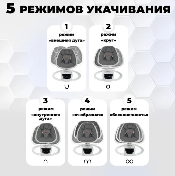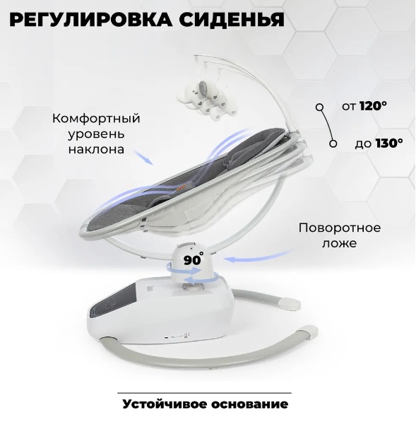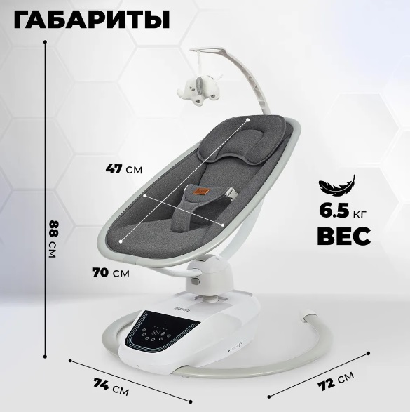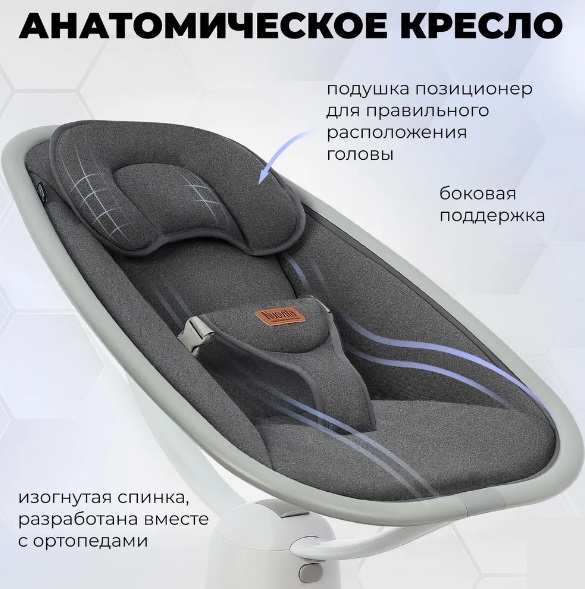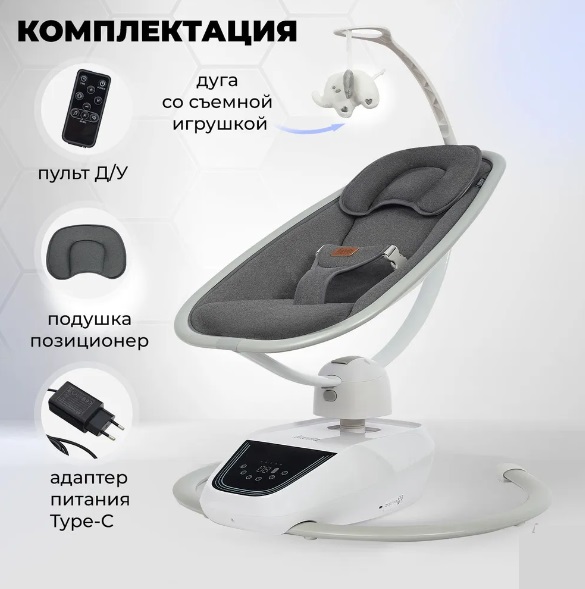 В комплекте: Электрокачель, подушка, адаптер питания, подвесная игрушка, пульт ДУ.