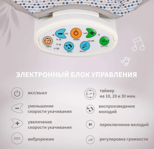 - В комплекте: подушка, дуга с 2 игрушками, вибромузыкальный блок