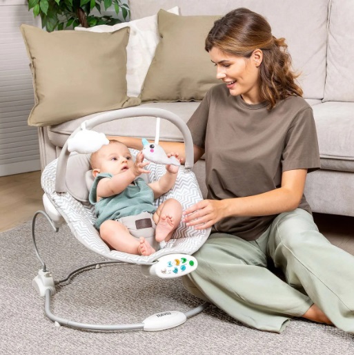 Впрочем, месяц-два, и ребенок начнет все чаще обращать внимание не на комфорт своего положения в шезлонге для новорожденных, а на дугу с занятными игрушками и разнообразные мелодии и звуки, которые электрический шезлонг-качалка Nuovita Cullare CU1 может проигрывать. Высота дуги оптимальна, чтобы мотивировать ребенка тянуться к заинтересовавшим его предметам и стимулировать хватательный рефлекс. А пока малыш будет изучать мир при помощи игрушек и мелодий, родители по достоинству оценят небольшой вес детского шезлонга для новорожденных (3,9 кг — не составит труда перенести его из комнаты в комнату или взять с собой в дорогу), удобство складывания и интуитивно понятное управление при помощи специального блока.