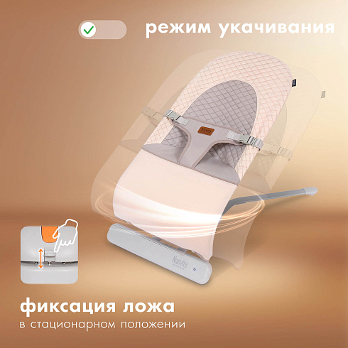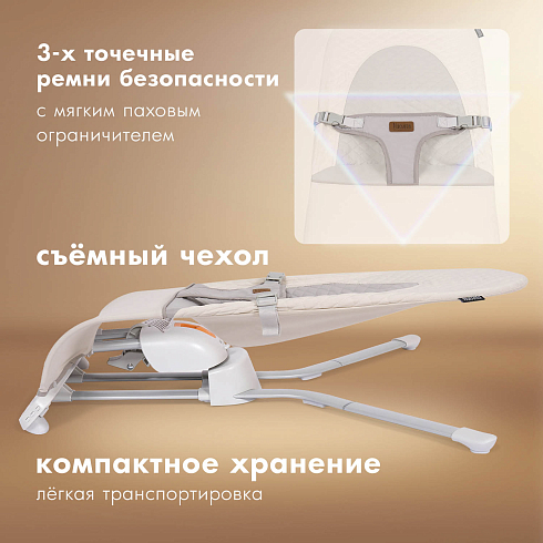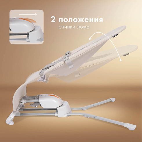 Качели-шезлонг управляются при помощи кнопок на панели и пульта дистанционного управления. Изделие оснащено «датчиком умного укачивания», который срабатывает, если находящийся в качелях ребенок начинает проявлять повышенную активность. Поэтому родителям не нужно отвлекаться, чтобы перезапустить качание. Качели легко поддерживать в чистоте — они имеют съемный чехол, который можно стирать в ручном режиме. После высыхания чехол вновь надевается на раму сиденья и фиксируется застежками.