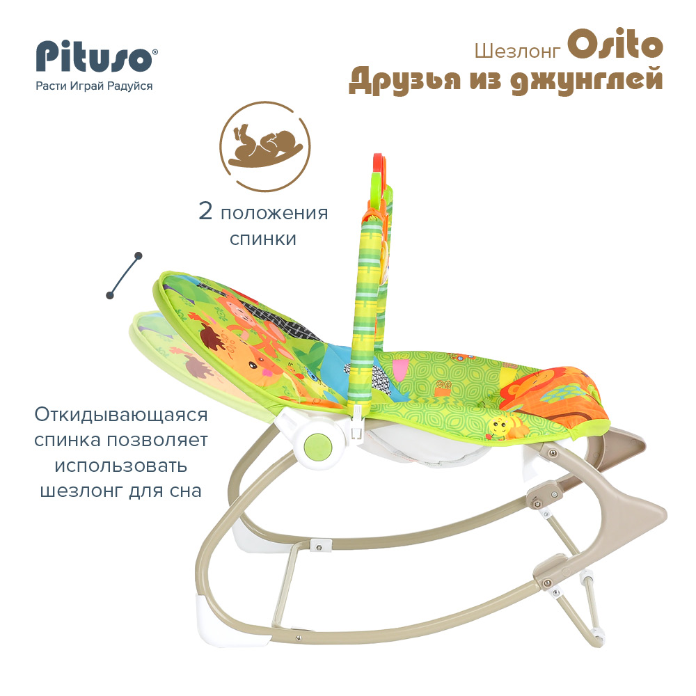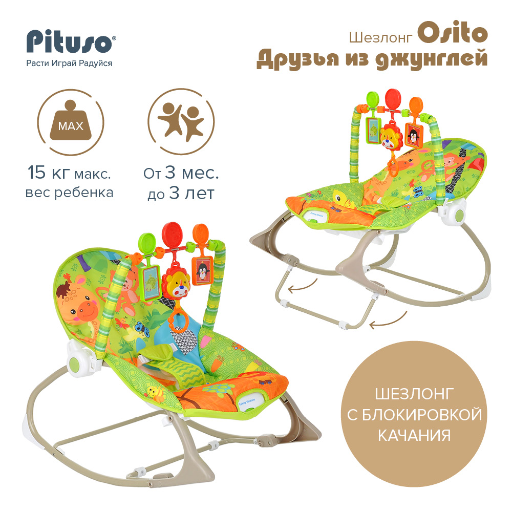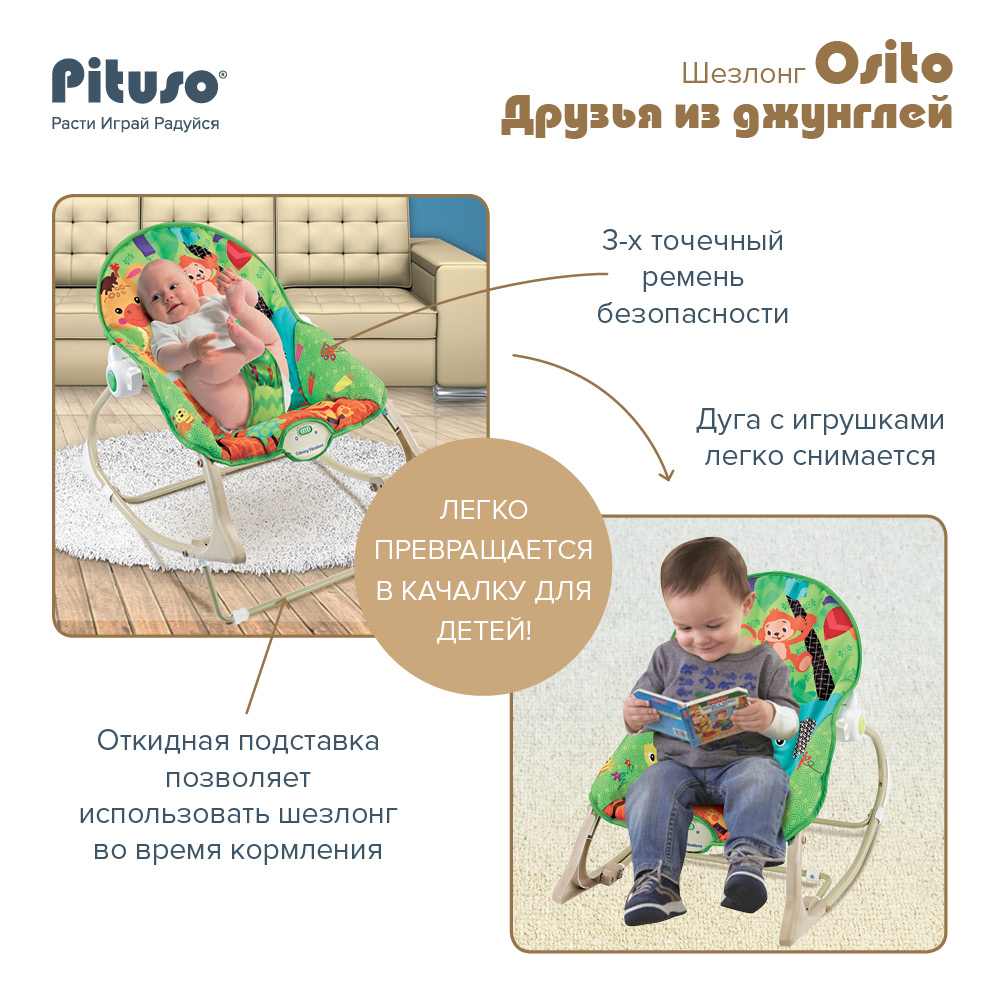 Шезлонг PITUSO OSITO (питусо осито) - детский шезлонг 2 в 1 с возможностью трансформироваться в детский стульчик. Такая модель рекомендована для малыша от 3 месяцев до 4 лет! , примерно до 15 кг. Он яркий, красивый и устойчивый. Удобно переносить и брать в дорогу.