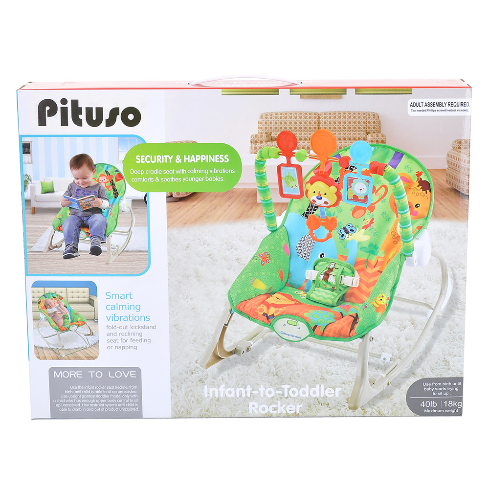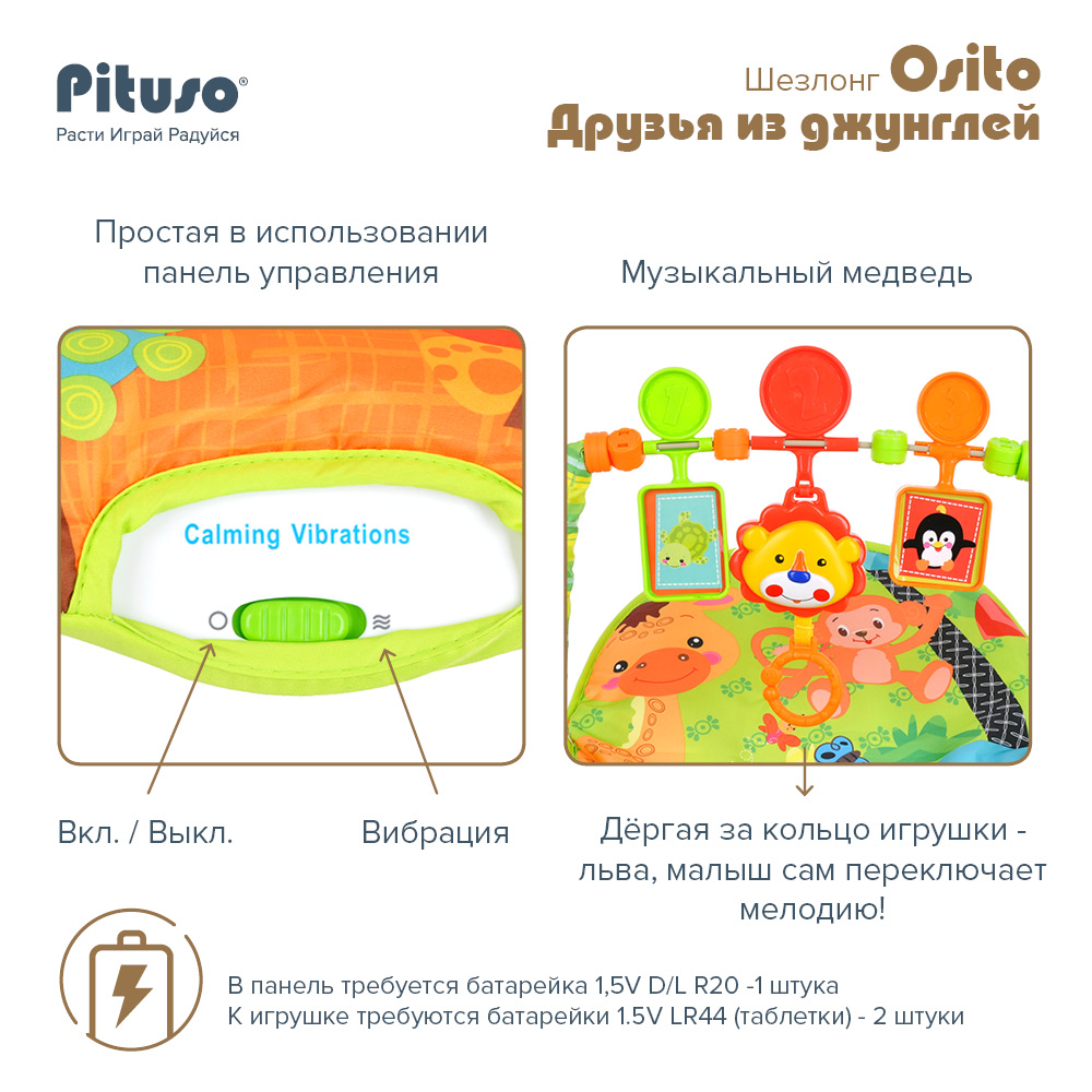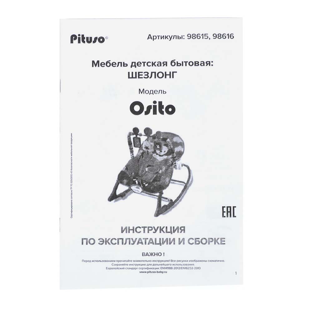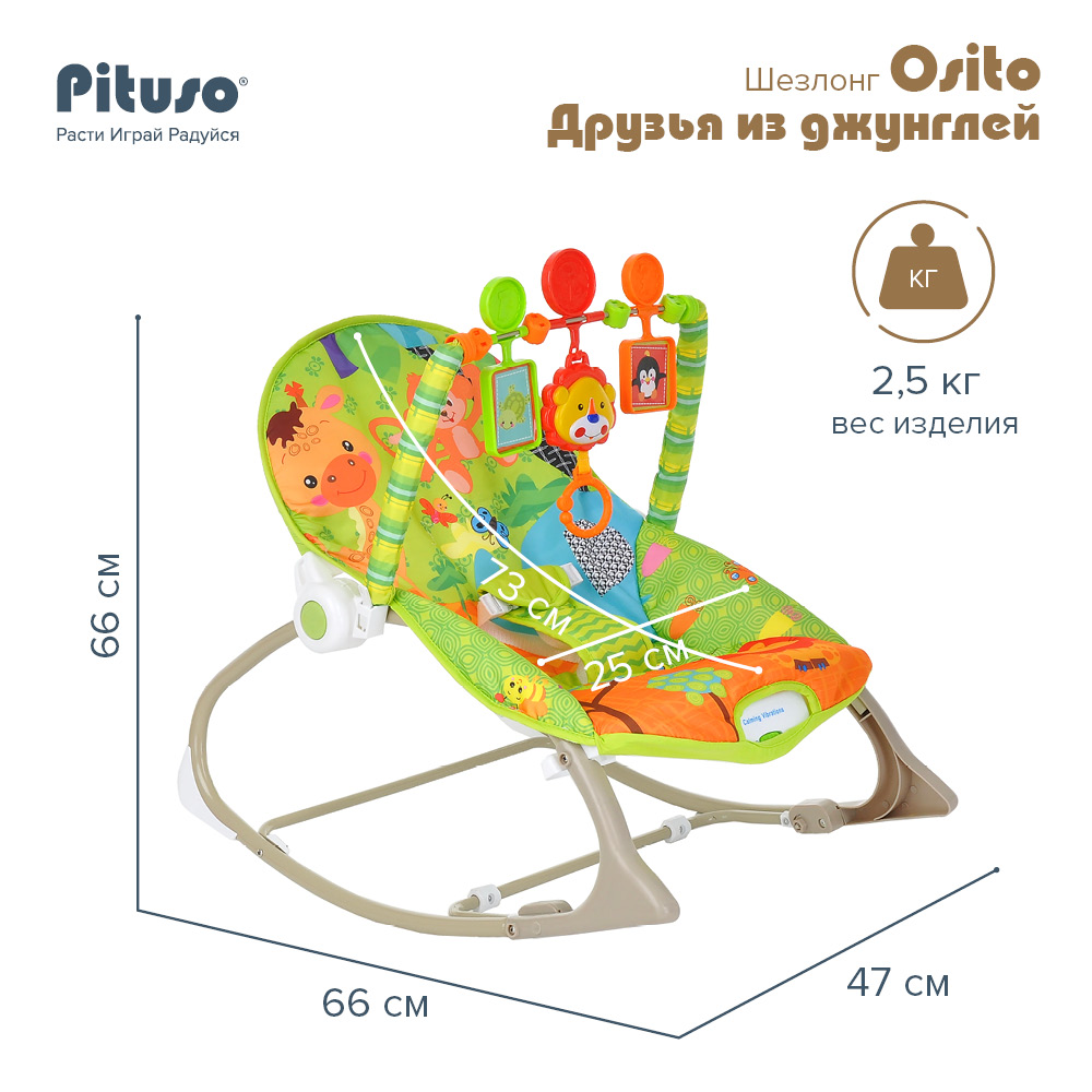 Шезлонг PITUSO OSITO (питусо осито) - детский шезлонг 2 в 1 с возможностью трансформироваться в детский стульчик. Такая модель рекомендована для малыша от 3 месяцев до 4 лет! , примерно до 15 кг. Он яркий, красивый и устойчивый. Удобно переносить и брать в дорогу.