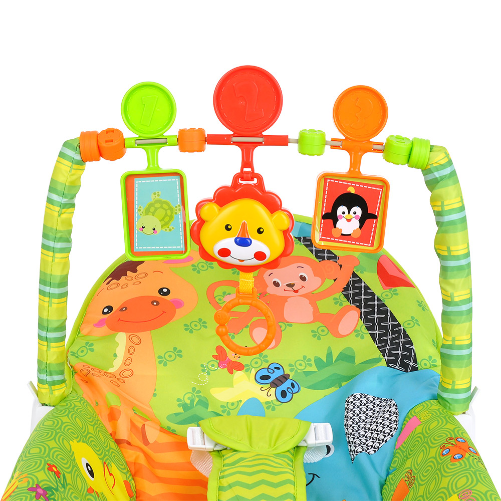 Съёмная дуга с интересными игрушками увлекут малыша в игру.