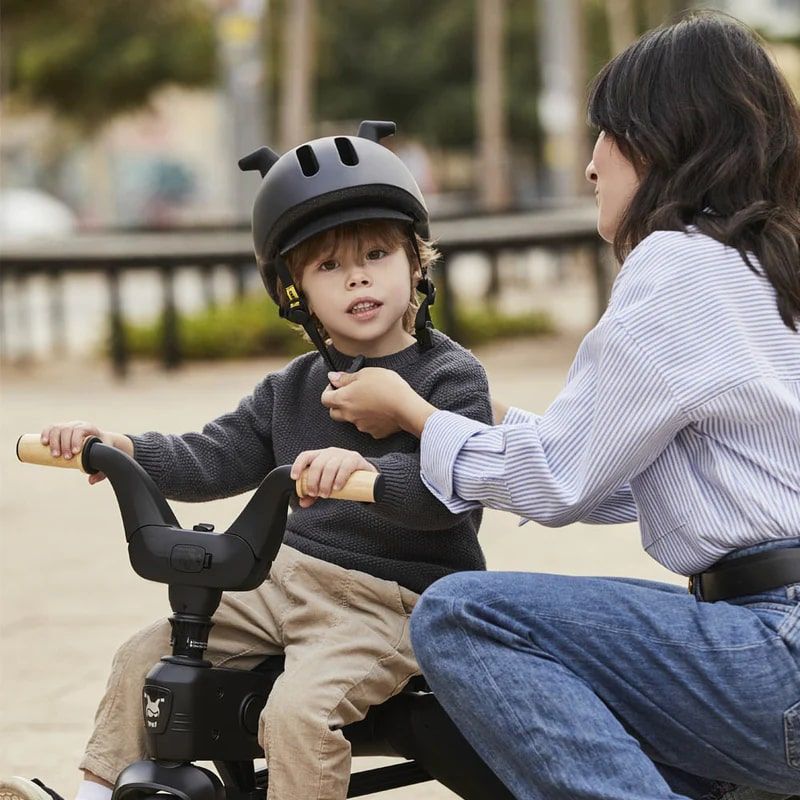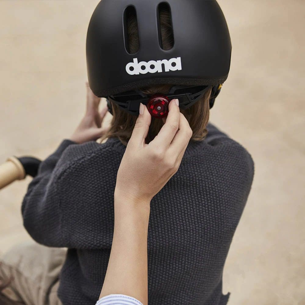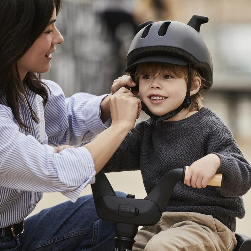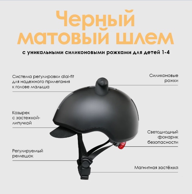 Шлем Doona Liki Helmet (Дуна лики хелмит) - стильный детский шлем, который гарантирует безопасность во время поездок на велосипеде. Велосипед имеет премиальный черный, матовый цвет, который отлично подойдет как мальчику, так и девочке. Оригинальные силиконовые рожки добавляют шлему игривости и хорошего настроения. Шлем регулируется (XS 45-50 см), что позволит идеально настроить шлем под размеры ребенка. В задней части шлема предусмотрен небольшой светодиодный фонарик, который сделает поездки в вечернее время более безопасными. Съемный козырек обязательно пригодится для защиты от солнца или небольшого дождика. Для удобства юного гонщика предусмотрен удобный магнитный замок.