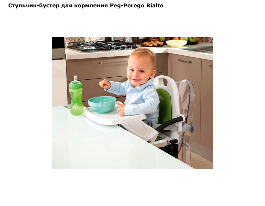 Стул для кормления Peg perego Rialto (пег перего риалто) - один из самых компактных и мобильных стульчиков для кормления детей от 9 месяцев до 3-х лет. Прекрасное решение для поездок, для небольших квартир или в гостях. Такое сидение надежно крепится на любой взрослый стул и у вас будет полноценное, удобное и комфортное место для кормление малыша. В этом простом на первый взгляд стуле сочетаются прекрасный функционал, удобные регулировки, только качественные материалы, безопасная и надежная конструкция.