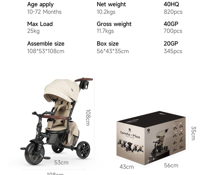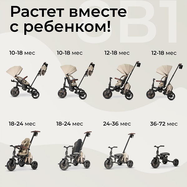 Трехколесный велосипед Qplay Comfo Max T70 (кьюплей комфо макс) - детский велосипед - коляска для ребенка от 10 месяцев до 5-6 лет. Велосипед имеет 8 вариантов трансформации, позволяя настроить велосипед под возраст и потребности ребенка.