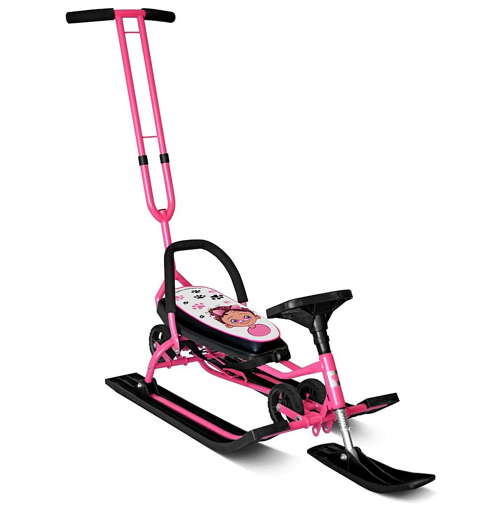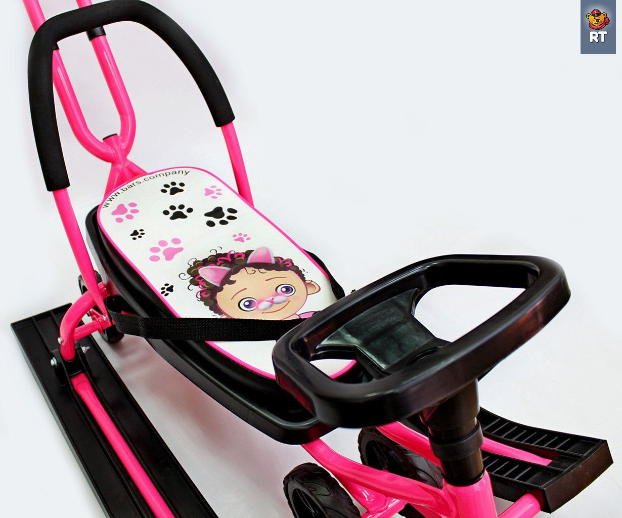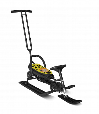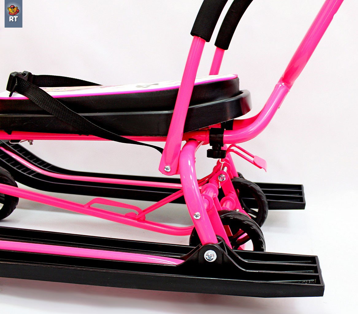 Снегокат Барс 111 Mobile с Т-образным толкателем и колесной базой - настоящая находка для родителей с маленьким ребенком. Удобная ручка - толкатель позволит везти снегокат и наблюдать за ребенком, а специальный ремешок обеспечит безопасность маленького пассажира. Когда ребенок подрастет ручку легко снять, и везти снегокат за веревку. При длительных прогулках пригодиться спинка, а при скатывании со склона спинку легко сложить.