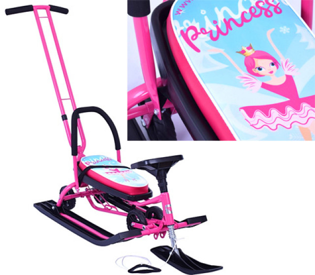- Съемная ручка -толкатель, управляет передней лыжей.