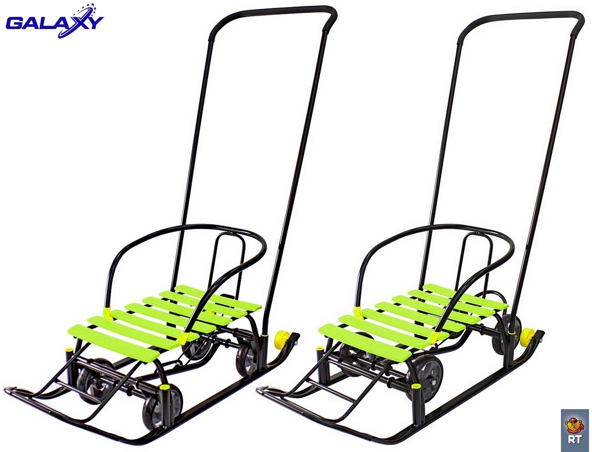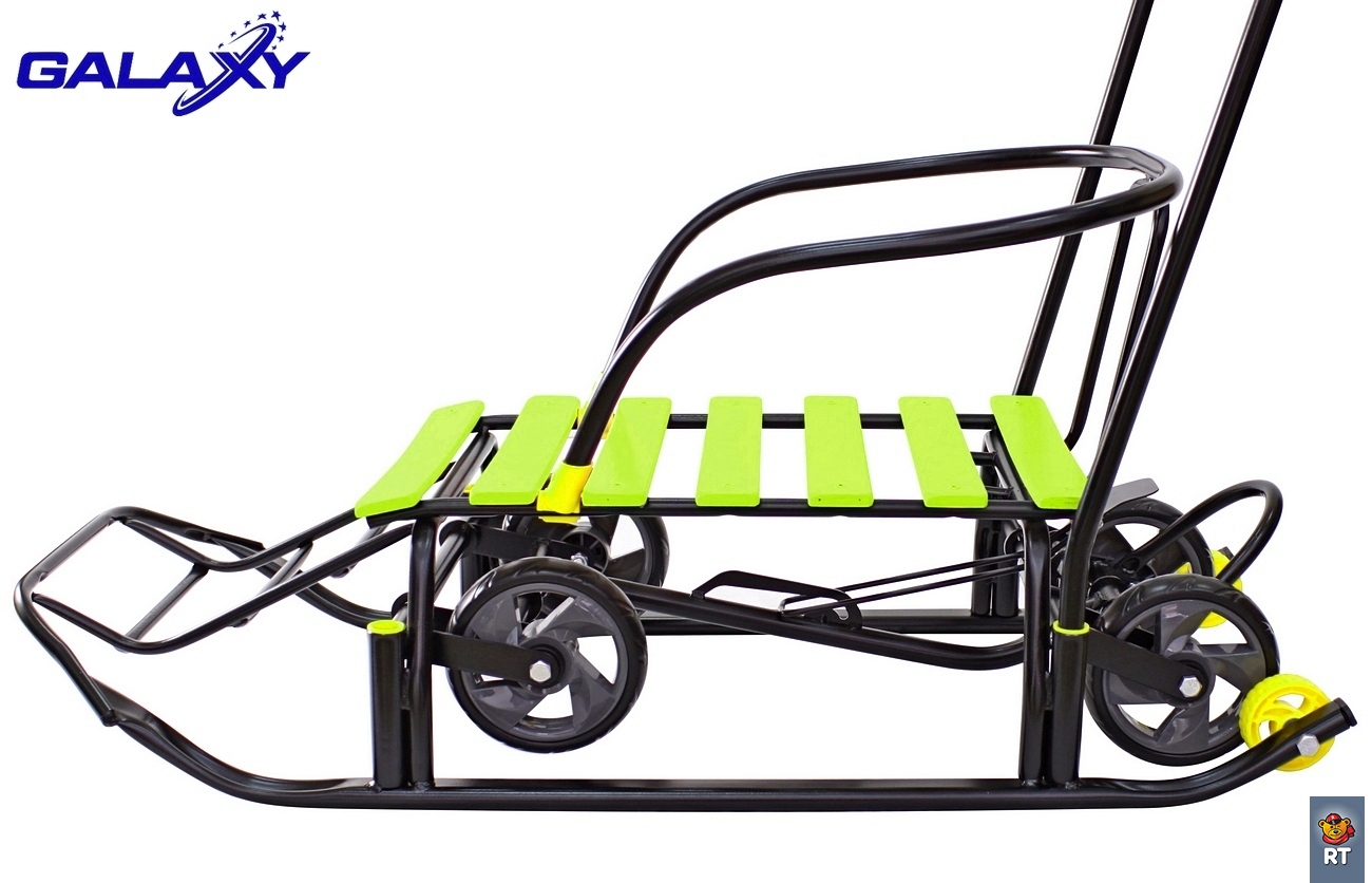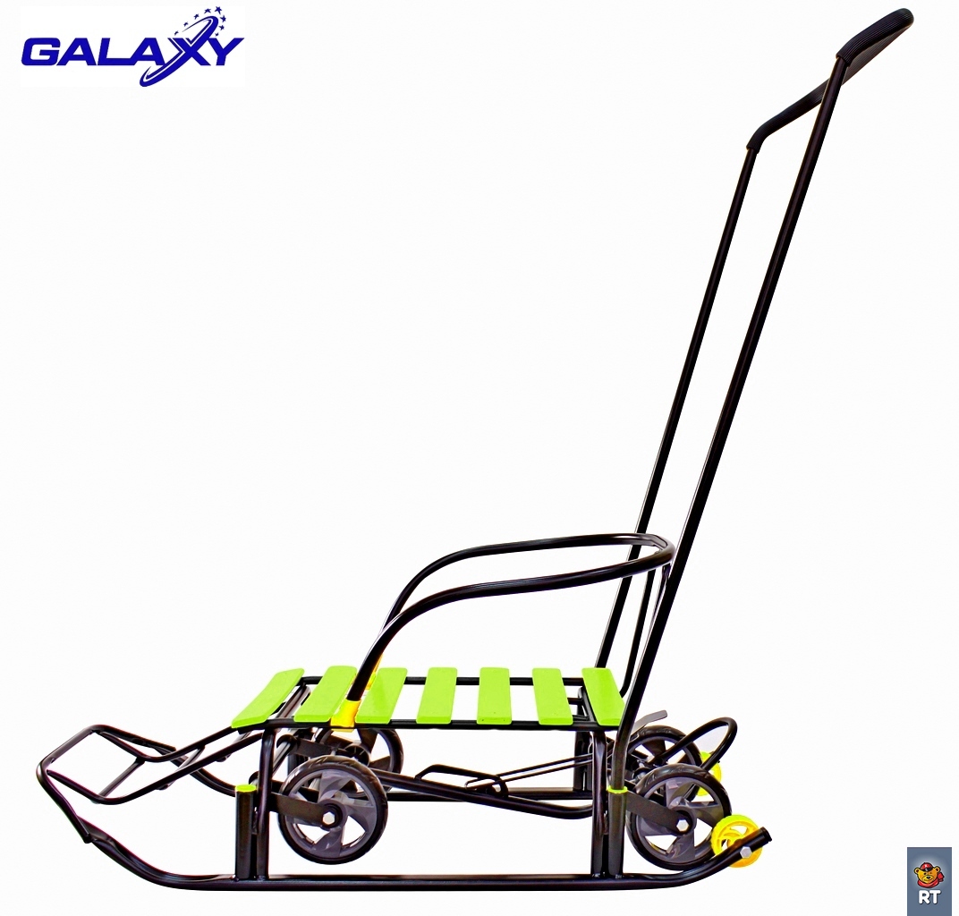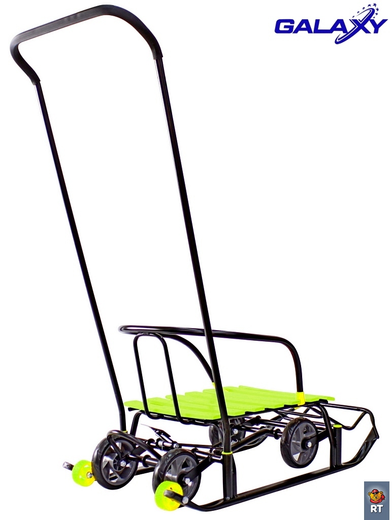 Снегомобиль Snow Galaxy Black Auto (сноу гелакси блек авто) - санки с большими резиновыми колесами и деревяными рейками для ребенка от года до 5 лет. Это не просто санки, это удобная модель с возможностью в любой момент выдвинуть колеса и заехать в магазин, проехать через дорогу, или просто по асфальту. Вы станете более мобильны, и не будете сильно зависить от количества выпавшего снега и степени чистки дорог. Так же большим преимуществом данной модели является ручка -толкатель для родителей. Она позволит везти санки спереди и наблюдать за ребенком во время движения, что очень удобно и более безопасно для перевозки малышей. При использовании санок с колесами (как коляску) ручку толкатель можно устанавливать в 2-х направлениях: по ходу движения и против хода движения.