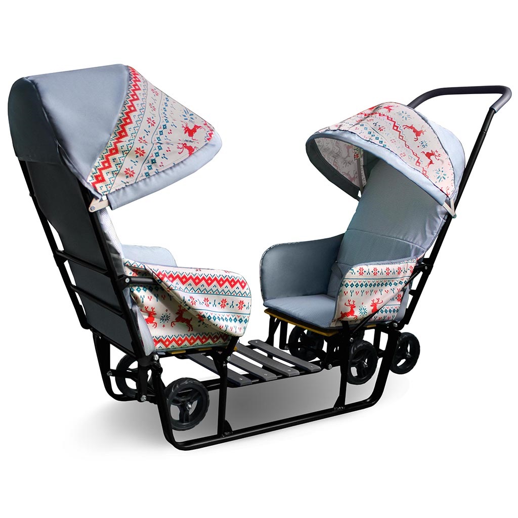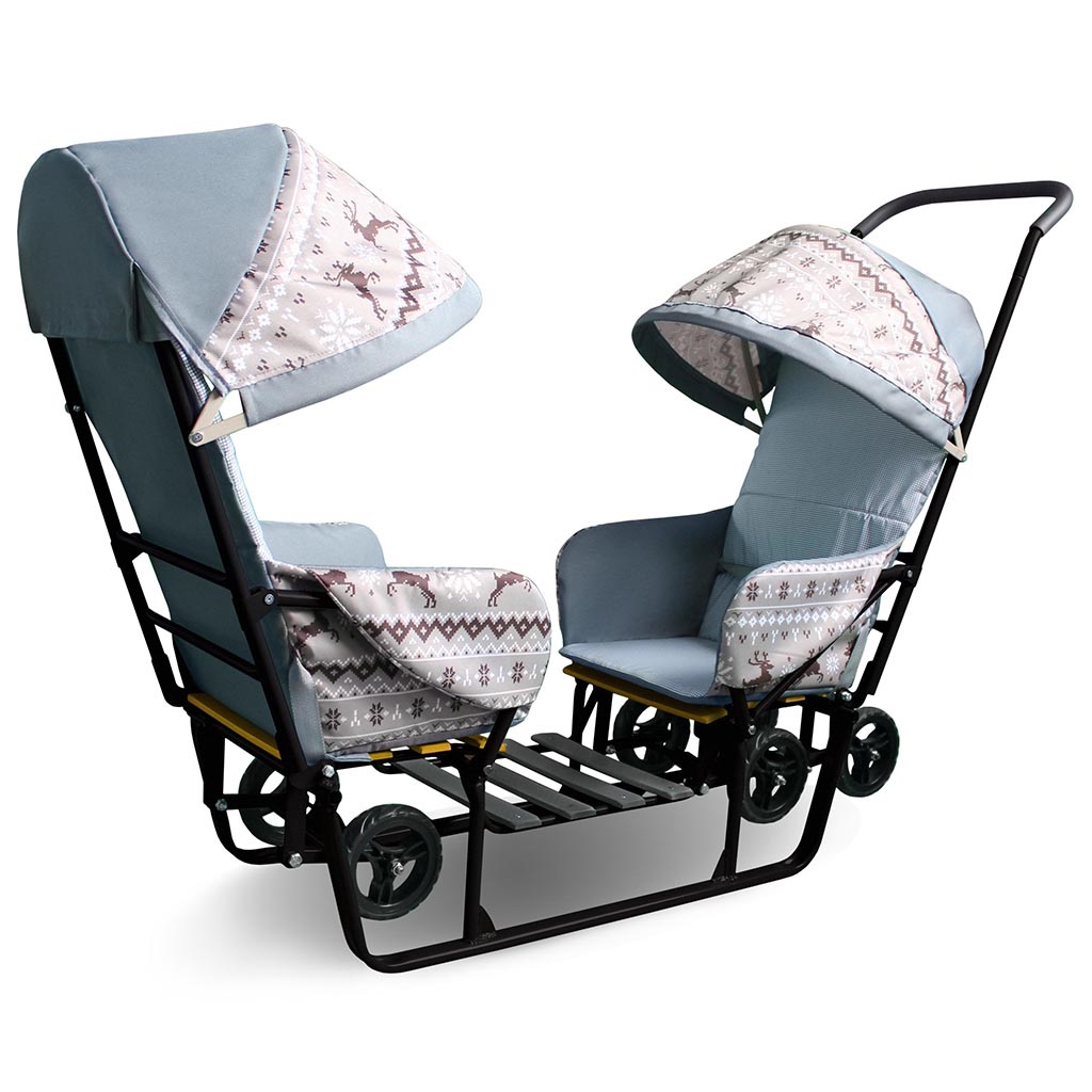 - Санки коляска для двоих детей примерно от 6-9 месяцев.