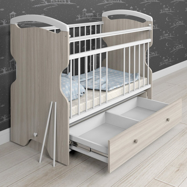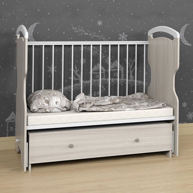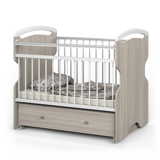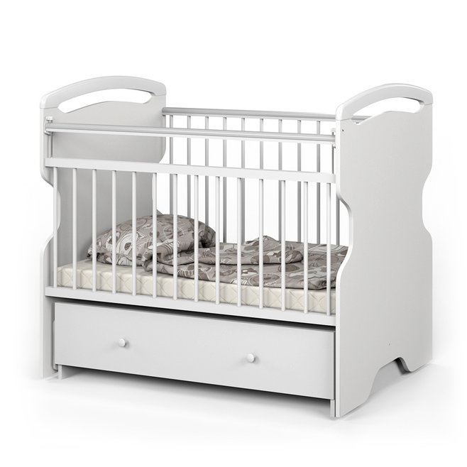 Детская кровать Атон Elsa (эльза) - удивительное сочетание дизайна и высокого качества в детской кроватки. Кровать отличается высоким комфортом и продуманностью деталей. Для малышей разного возраста предусмотрено 3 положения ложа по высоте. Вам не придется низко наклоняться с новорожденным. Регулируемая перекладина позволит обеспечить малышу безопасность, а силиконовые накладки защитят детские зубки. Когда малыш подрастет и захочет самостоятельно залазить в кровать, вы можете спокойно вынуть пару реек из бортика. Еще огромным плюсом этой кроватки является удобный и бесшумный маятник, который легко фиксируется с любой стороны. Закрытый ящик, несомненно, пригодится для детских вещей и постельного белья.