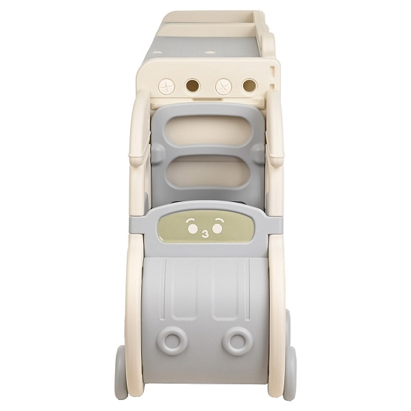 Интересным элементом стеллажа является машинка, которая отсоединяется от основных полок и может использоваться отдельно. Колеса у машинки крутятся, а дверь открывается.
