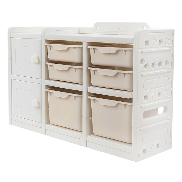 Стеллаж для хранения игрушек Pituso Simple (питусо симпл) - большое, интересное и безопасное пространство для игр и хранения детских игрушек. Разного объема выдвижные ящички и открывающиеся полочки позволят ребенку максимально задействовать свое воображение и реализовать любые игры. При этом все выполнено из качественного и надежного пластика, обработанного двойным способом, без заусенцев и острых углов.