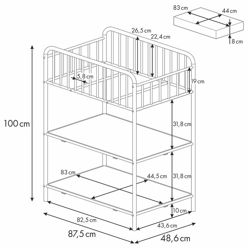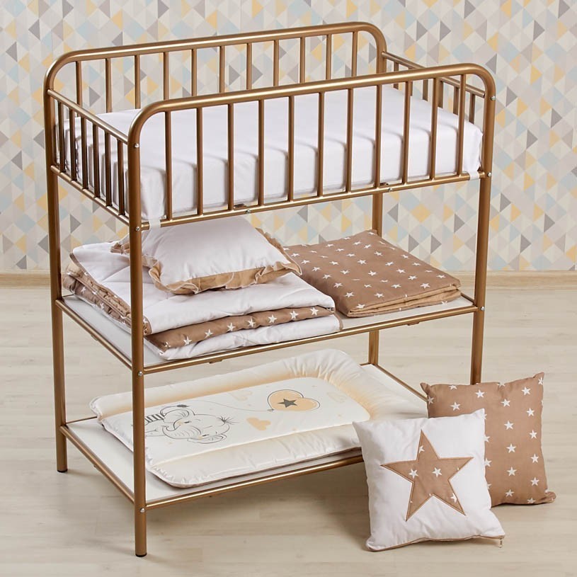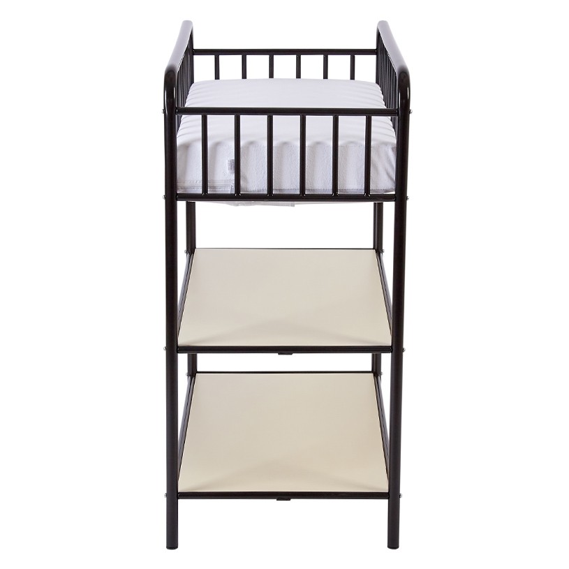 Столик для пеленания Polini kids Vintagе 1180 (Полини кидс винтаж) - удобный и практичный столик из металла. В комплект входит удобный матрасик для малыша с чехлом из мембраны. Столик представляет собой удобное место для переодевания, пеленания ребенка и проведения всех необходимых процедур. Крепкий каркас и надежные бортики гарантируют безопасность для ребенка. Две открытых полки помогут маме удобно разместить все необходимые предметы.