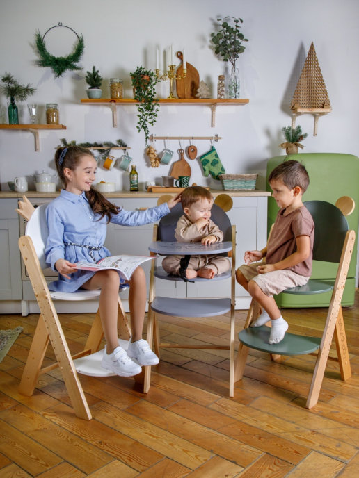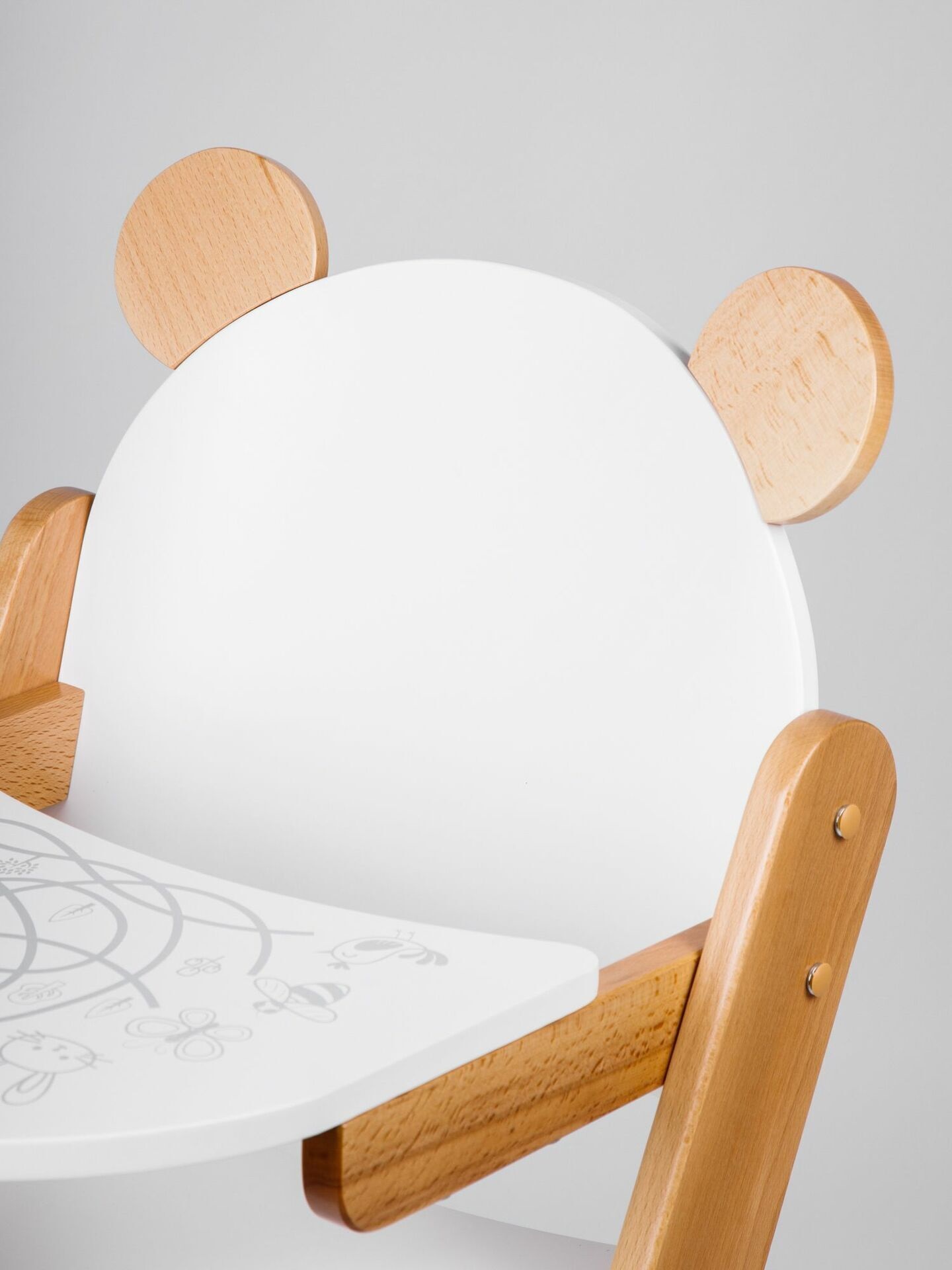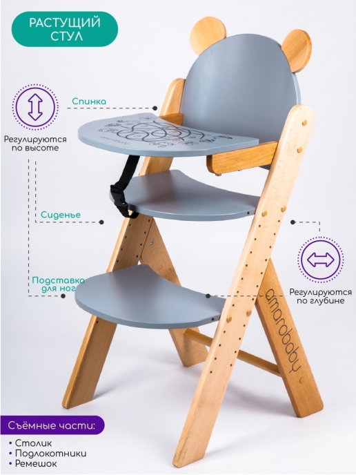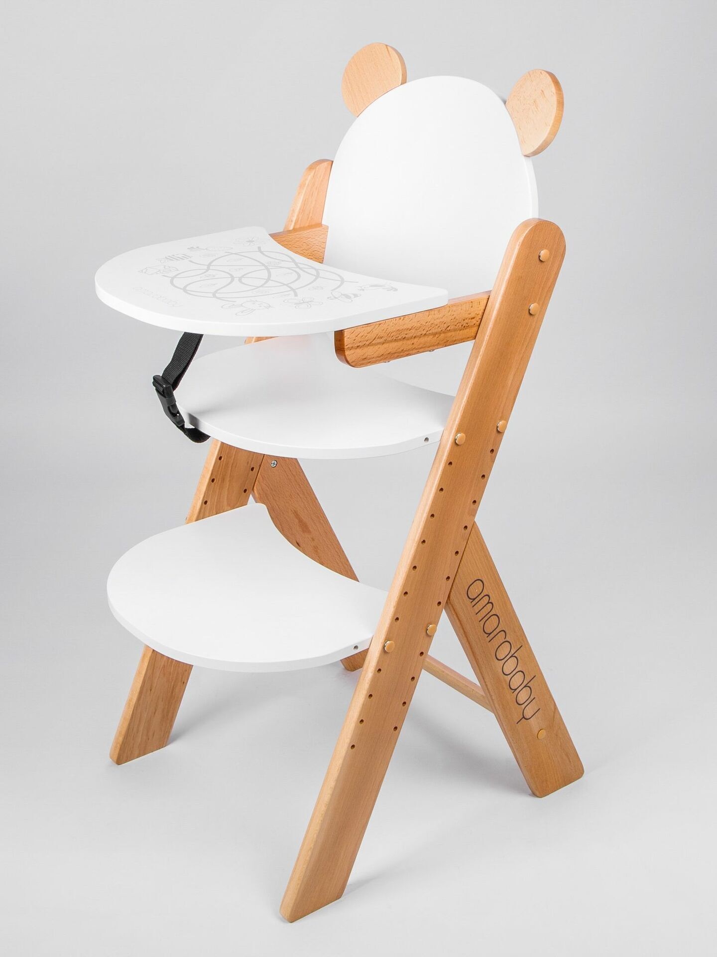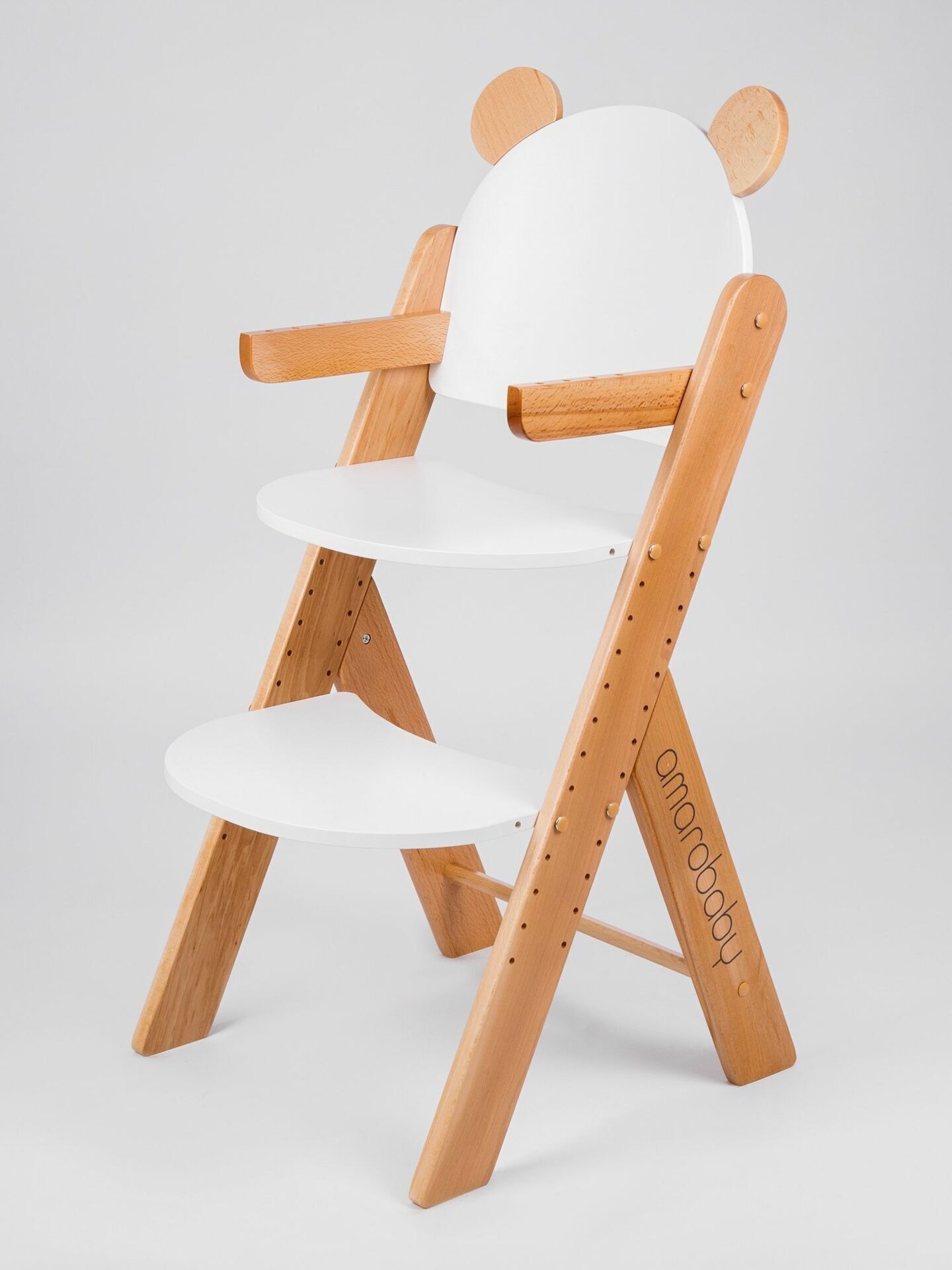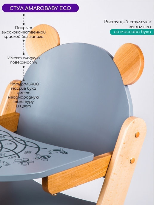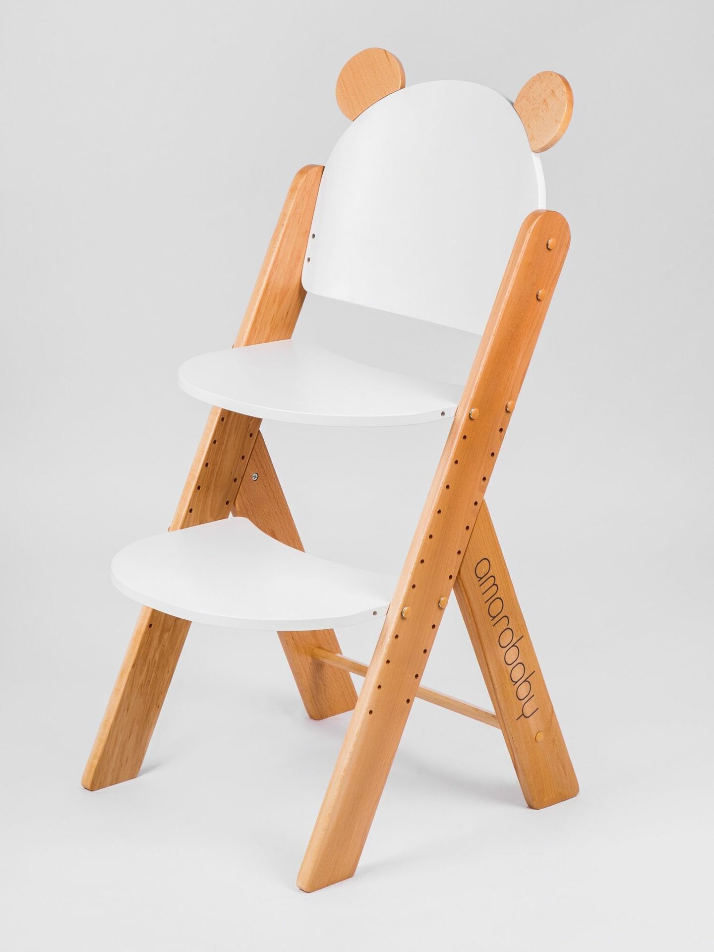 Стул для кормления Amarobaby ECO BEAR (Амаробеби эко корона) - находка для детей и родителей! Удобный стул будет расти вместе с вашим ребенком! Возрастная категория от 1 года до 10 лет. Растущий стульчик выполнен из массива бука, спинка - клееный шпон. Натуральный массив бука имеет неоднородную текстуру и цвет. Прочный и устойчивый, стульчик выдержит нагрузку до 35 кг.