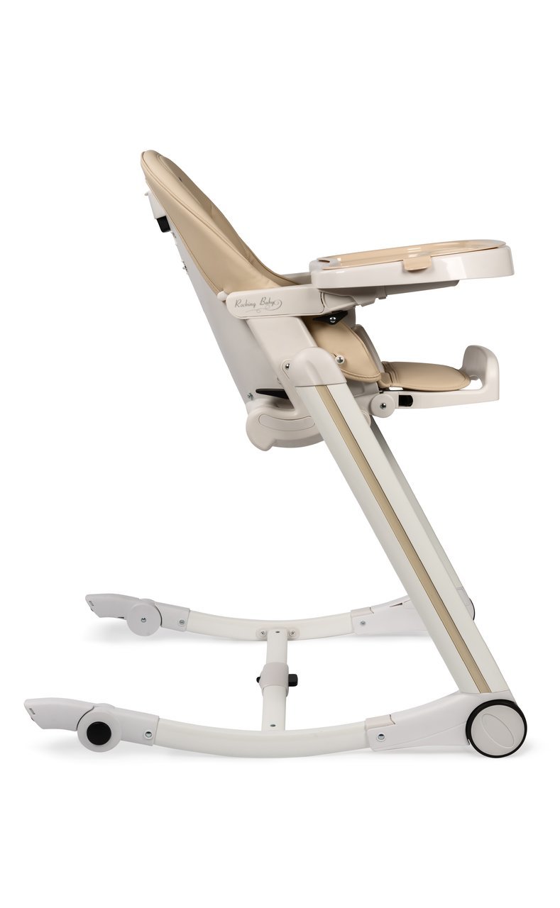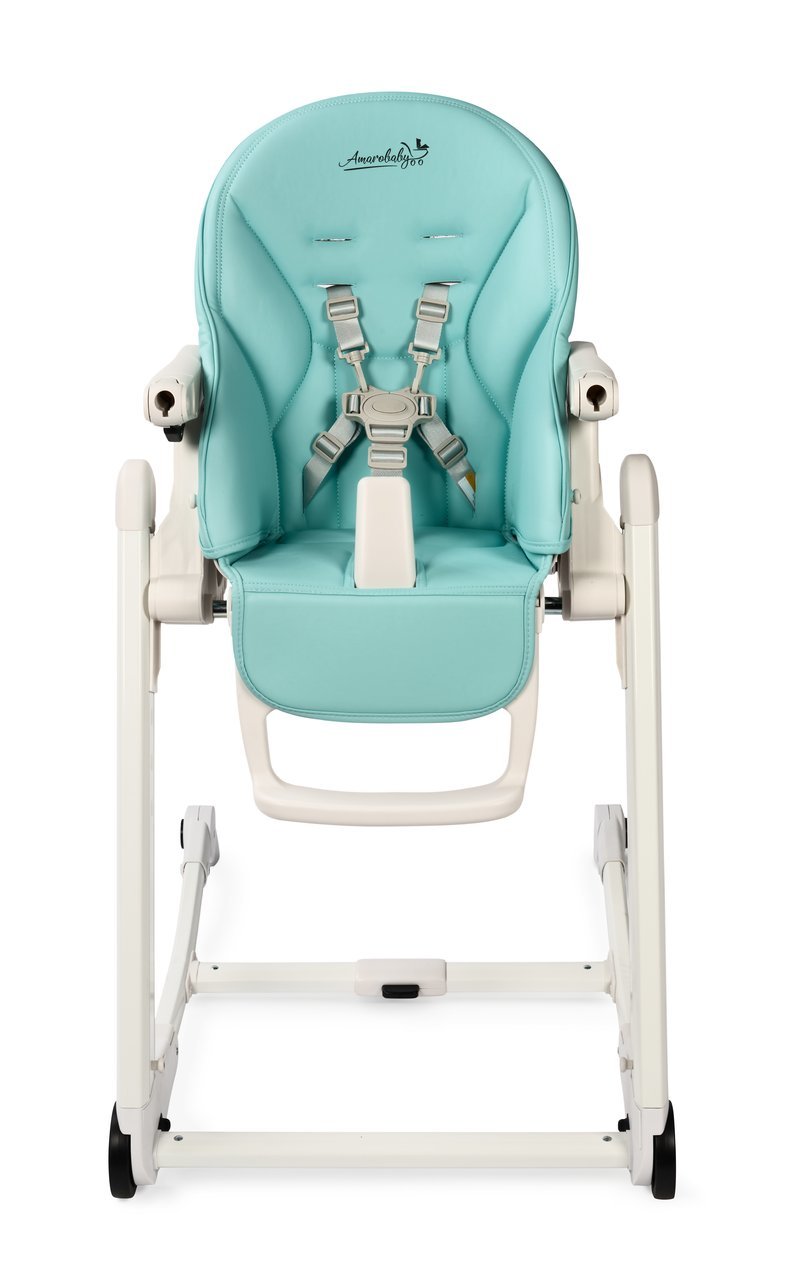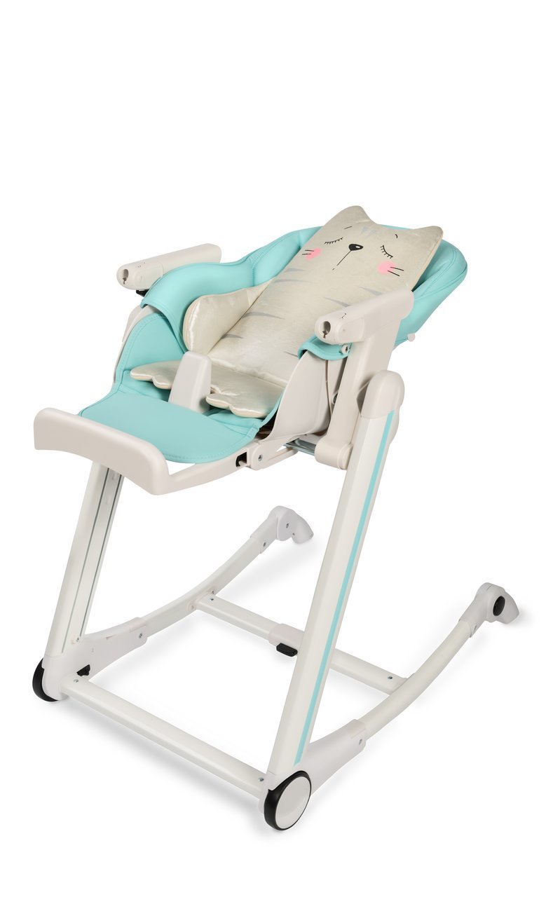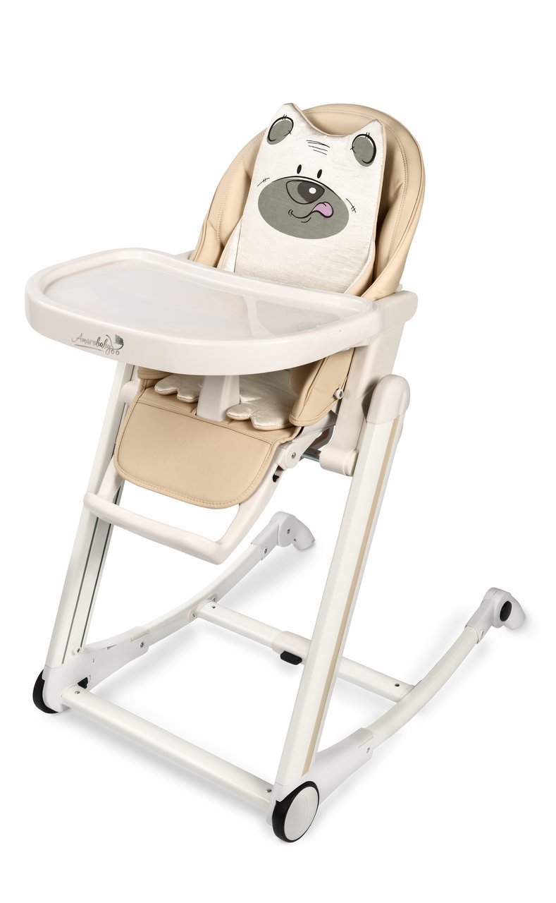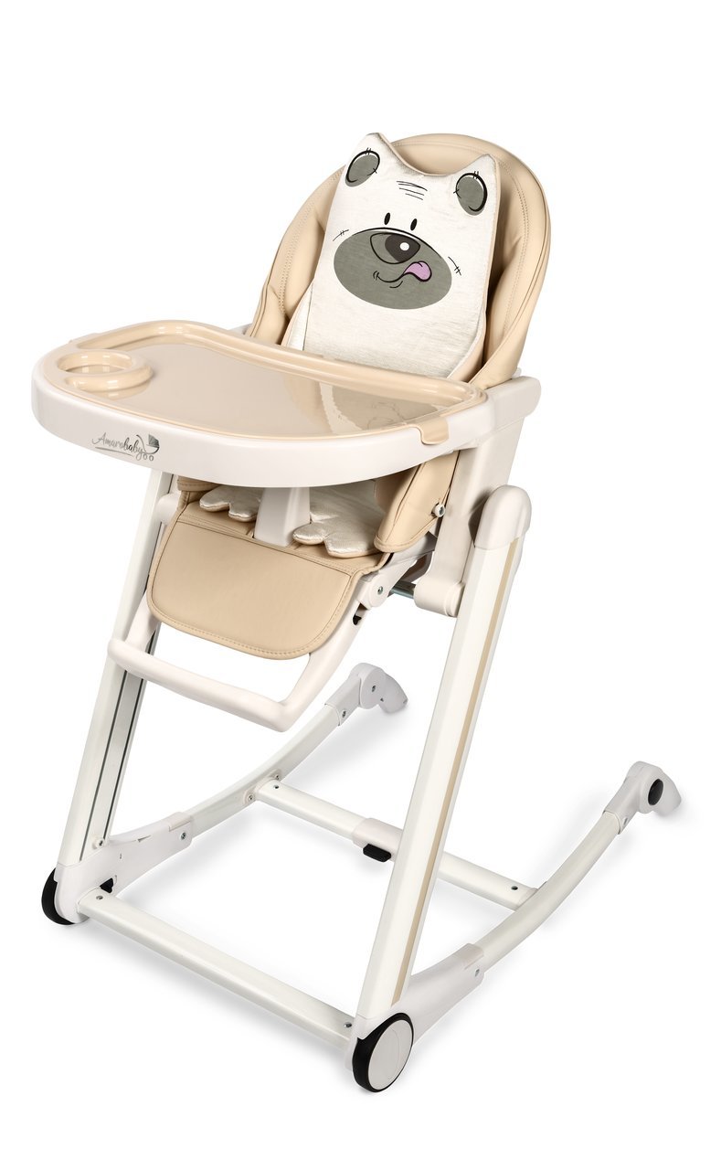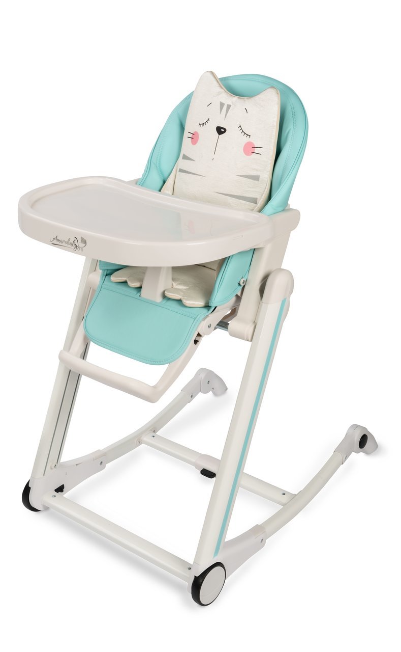 Стул для кормления AmaroBaby Rocking Baby (Амаробеби Рокин беби) - яркий и забавный стул для ребенка от 6 месяцев до 15 кг. За счет почти горизонтального положения спинки возможно использование в более раннем возрасте. В стульчике приятная, легкая в уходе обивка и мягкий двусторонний матрасик с забавным животным. В модели предусмотрены все необходимые для комфортной еды настройки: регулировка высоты, наклон спинки до почти горизонтального положения, поднимающаяся подножка, съемный столик. А еще в этой модели есть интересная функция качалки. Небольшими манипуляциями стул для кормления превращается в стул-качалку, которую, несомненно, оценит ваш ребенок. Для безопасного качания предусмотрены 5-ти точечные ремни безопасности и стопоры ограничители на задних ножках. Уровень стульчика Rocking Baby можно опустить до пола и ребенок может самостоятельно залезать и вылезать из него, или качаться в свое удовольствие. Удобные колесики помогут легко перемещать стул по кухне или квартире. В собранном виде он самостоятельно стоит и не занимает много места.