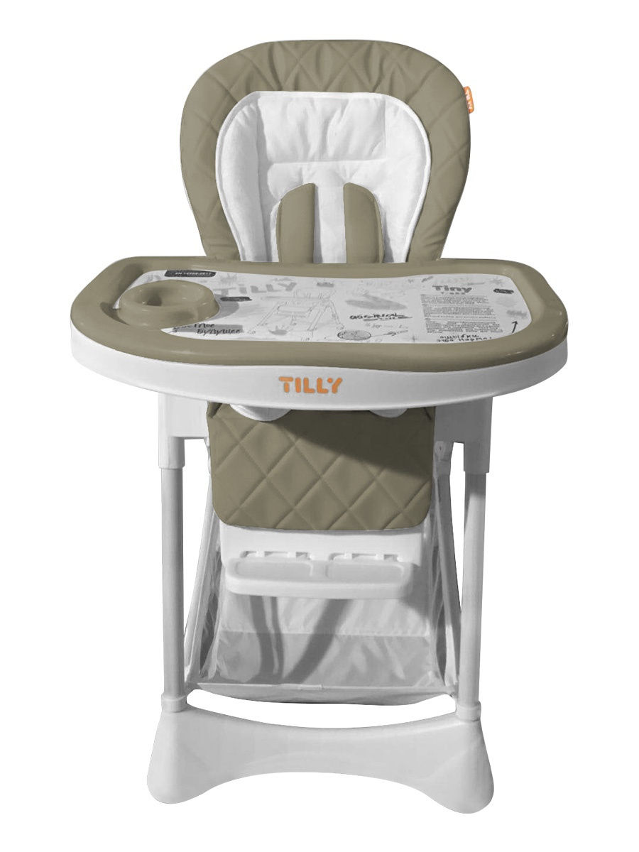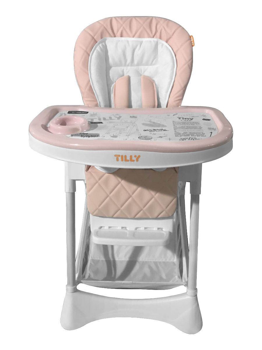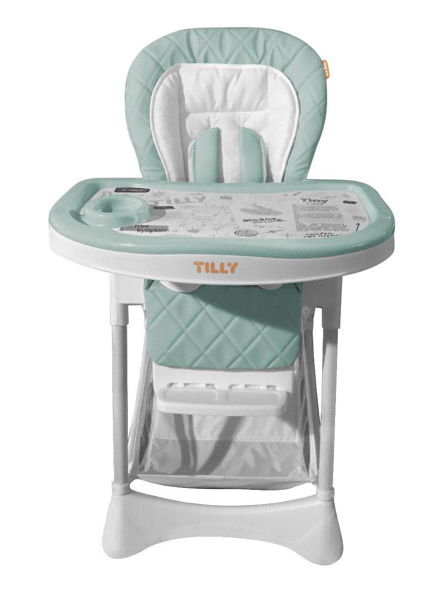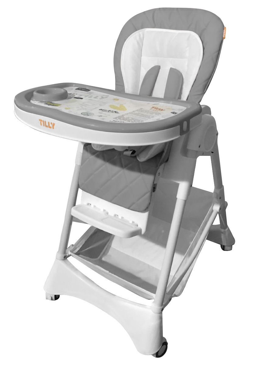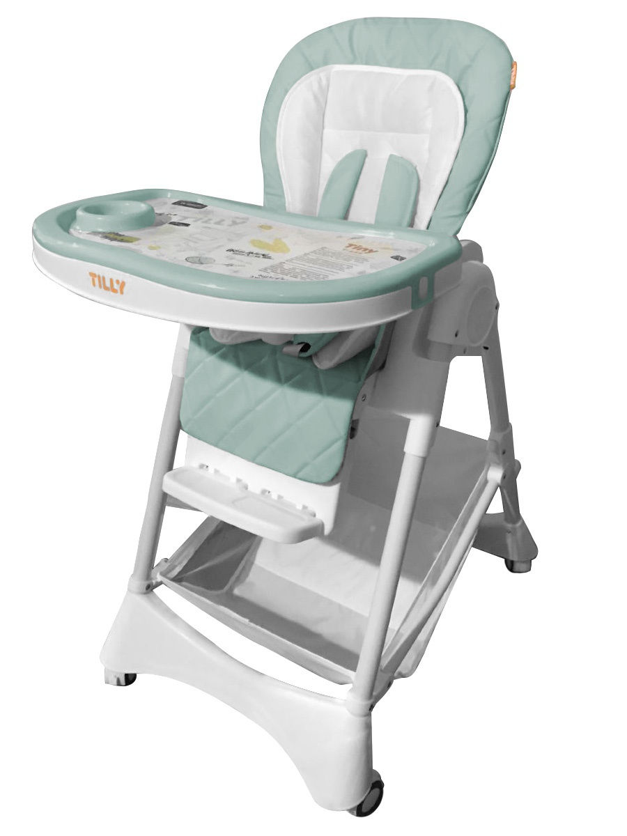 Стул для кормления BABY TILLY Tiny (беби тилли тини) - функциональный предмет детское мебели который поможет удобно организовать кормление ребенка от 6 месяцев. Пользуясь таким стульчиком, вы облегчите процесс кормления ребенка. Помимо кормления на стульчике можно играть, рисовать и комфортно отдыхать после еды. Стул имеет наклон спинки, регулируемую подножку и удобные колеса для перемещения. Для малыша предусмотрен регулируемый по глубине столик со съемным подносом, который легко снимается и моется.