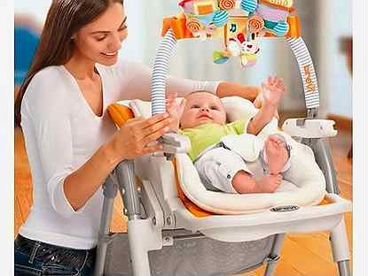 Стул для кормления Brevi B-Fun (Бреви Би Фан ) - Стул для кормления 3 в 1 для детей с рождения до 3-4 лет. Благодаря уникальному мягкому вкладышу из хлопка стул можно использовать, как шезлонг для новорожденного. Это будет безопасная, комфортная "колыбель" для ребенка с возможностью перевозить ее из комнаты в комнату, позволяя всегда быть рядом с ребенком и заниматься своими делами. Когда ребенок немного подрастет (примерно от 3 месяцев) на стул можно установить игровую дугу с игрушками. Теперь ваш стульчик будет не только местом для сна малыша, но и для игр и развития.