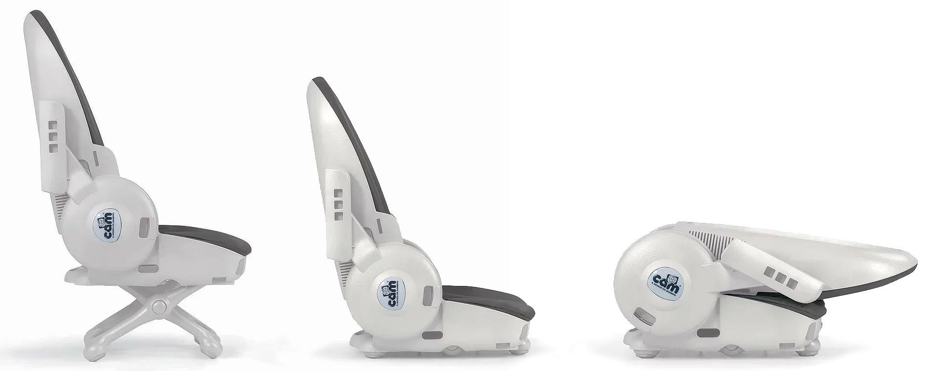 Стул для кормления Cam Original 4 в 1 (Кам Ориджинал) - уникальный по своему функционалу детский стул для ребенка с рождения до 14 лет. Он объединяет в себе все, что только может пожелать современный родитель. Это и полноценный стул для кормления ребенка, и компактный складной стульчик, который можно установить на любой взрослый стул, поворотный стул, стул для взрослого ребенка и снимающийся шезлонг для новорожденного. Такой большой функционал позволит купить один стул и пользоваться им на протяжении всего взросления ребенка. При этом модель отличается высоким качеством и безопасностью.