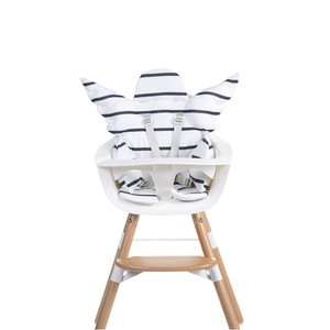 В комплекте к стульчику идет: Стул для кормления, цветная мягкая накладка-вкладыш (цвет ан ваш выбор из наличия), высокие деревянный ножки, съемные деревянный поднос, подставка для ног.