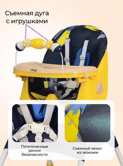 Стул для кормления COSTA Limma (коста лимма) - практичный детский стульчик для ребенка от 6 месяцев до 15 кг. Его главное преимущество в простоте использования. Как бы стульчик не испачкался, его можно полностью помыть в ванной за считанные минуты. Ни каких щелей, труднодоступных мест и прочего. Накидка из эко кожи легко вытирается влажной салфеткой или моется.