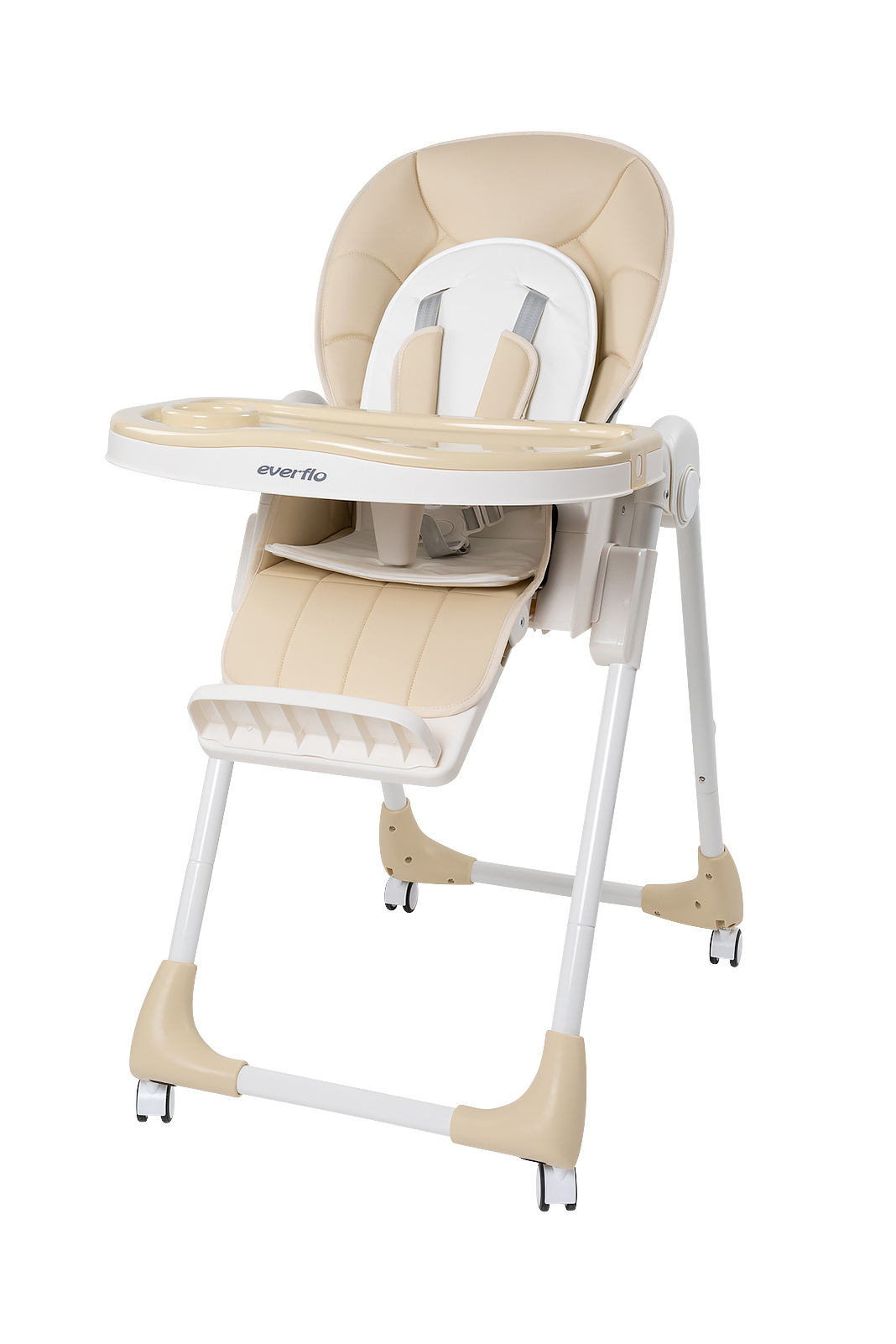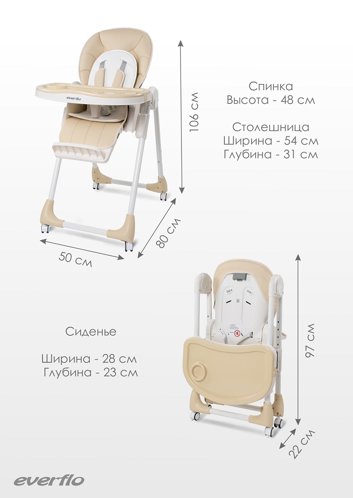 Стул для кормления Everflo Shell Shell Q45 (еверфло шелл) - многофункциональный стул для организации удобного кормления ребенка от 6 месяцев до 4-5 лет. С помощью такого стула кормление будет проходить удобнее для вас и малыша, а уборка после кормления не займет много времени и сил. Благодаря регулировке спинки в сочетании с регулируемой подножкой, стульчик можно превратить в шезлонг, высоту которого можно регулировать в семи положениях. Благодаря множеству регулировок стула и максимальной нагрузке до 25 кг стульчик можно использовать максимально долго. Чехол стула выполнен из качественной эко кожи, он легко чиститься, а при необходимости полностью снимается для стирки. Съемный столик имеет дополнительный подносик. Стул компактно складывается и не занимает много места. Для удобного перемещения по комнате стул оснащен 4 колесами с поворотным механизмом на 360 градусов. При необходимости все колеса блокируются.