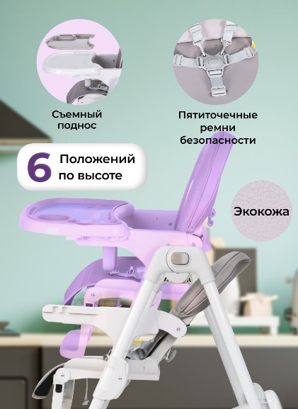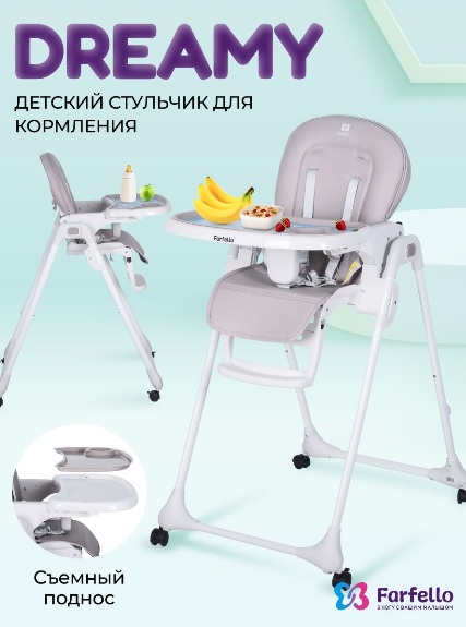 Стул для кормления Farfello Dreamy (Фарфелло Дрими) - стильный и практичный стульчик для кормления ребенка от 6 месяцев до 3 лет. Стульчик оснащен всеми необходимыми настройками для удобства и комфорта ребенка и его родителей: наклон спинки и подножки, регулировка по высоте. Стульчик оснащен столиком со съемным подносом и подстаканником, который можно снять и поместить на специальные крючки с задней стороны стульчика. За безопасность крохи отвечают 5- ти точечные ремни безопасности, дополнительно столик оснащен межножным ограничителем от сползания. Сидение выполнено в ярком съемном чехле из экокожи, который легко моется. При необходимости стульчик легко складывается и не занимает много места.