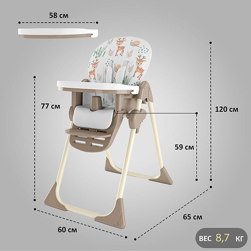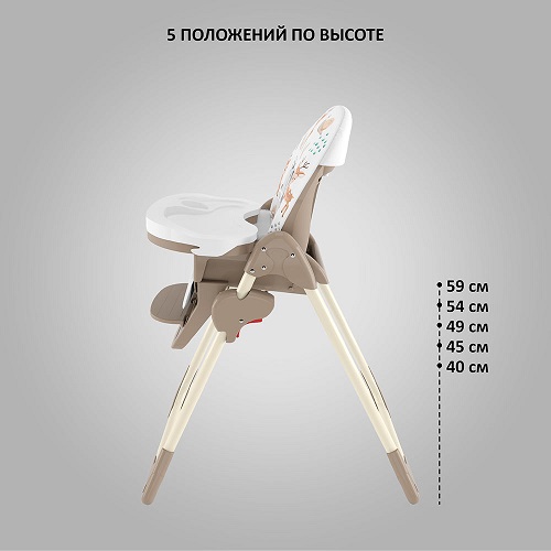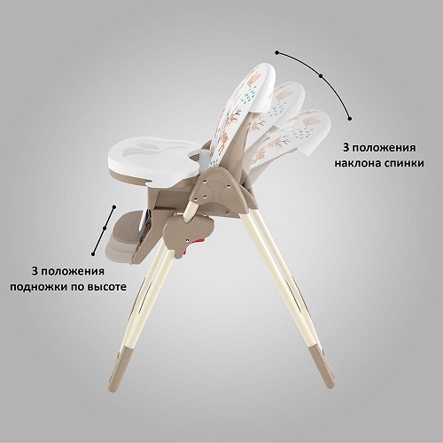 Стул оснащен столиком для кормления со съемным подносом. Столик удобно регулируется по глубине и легко моется.