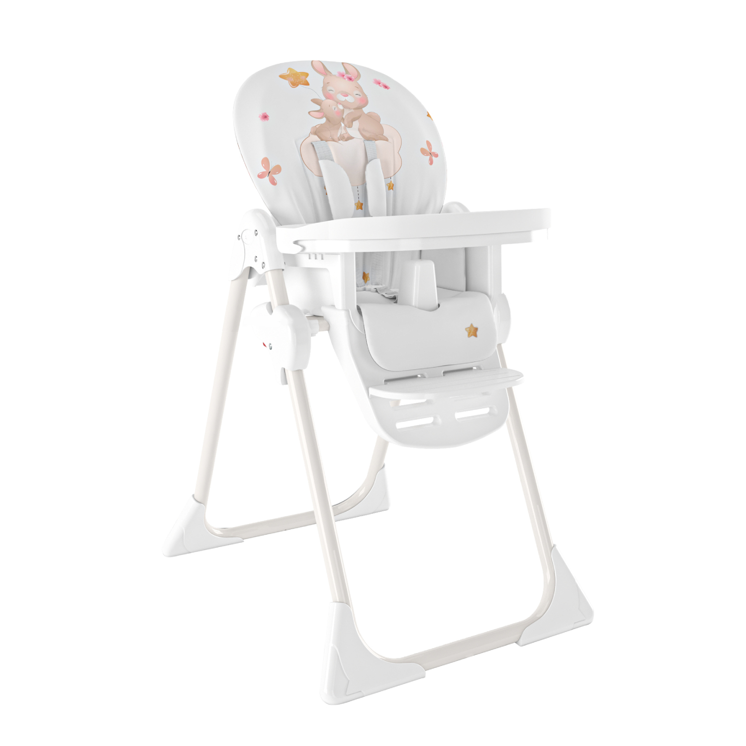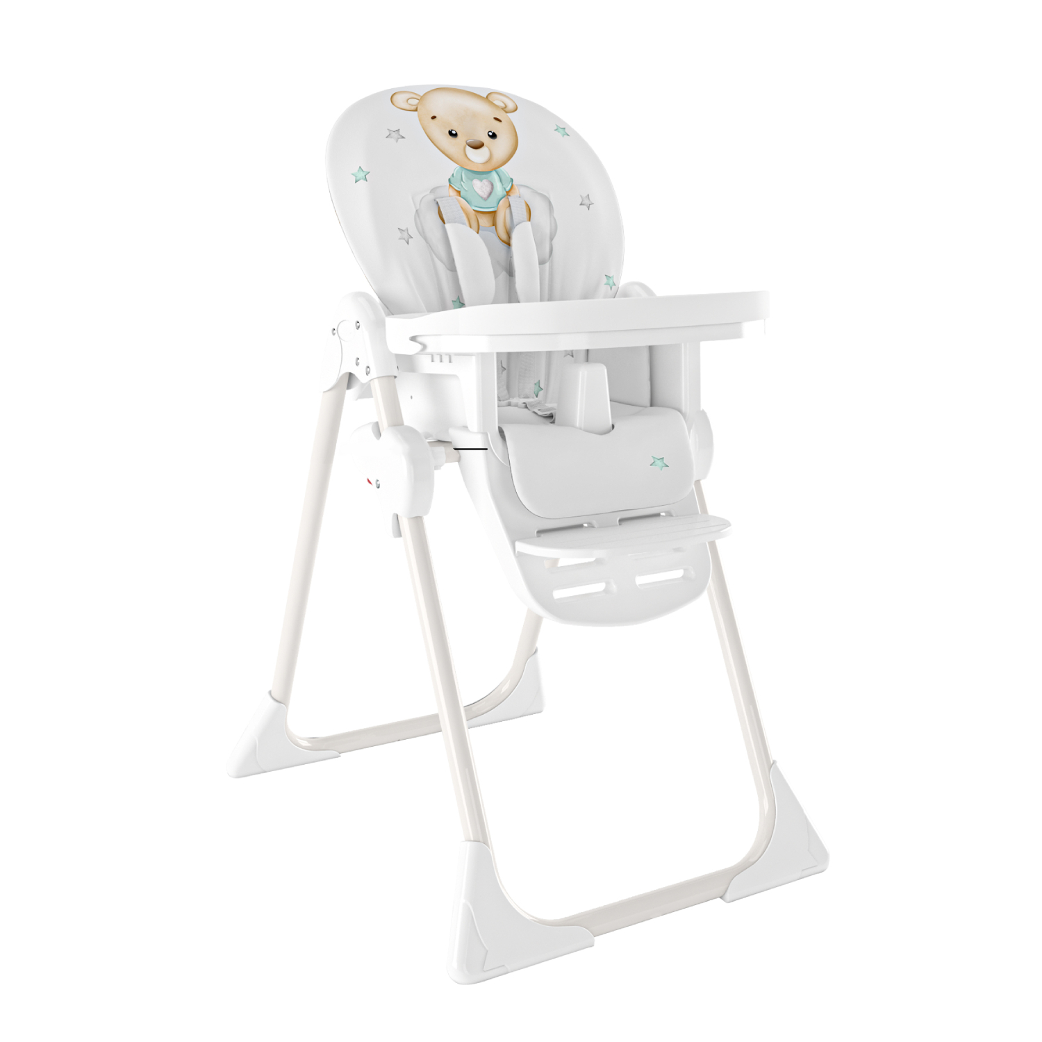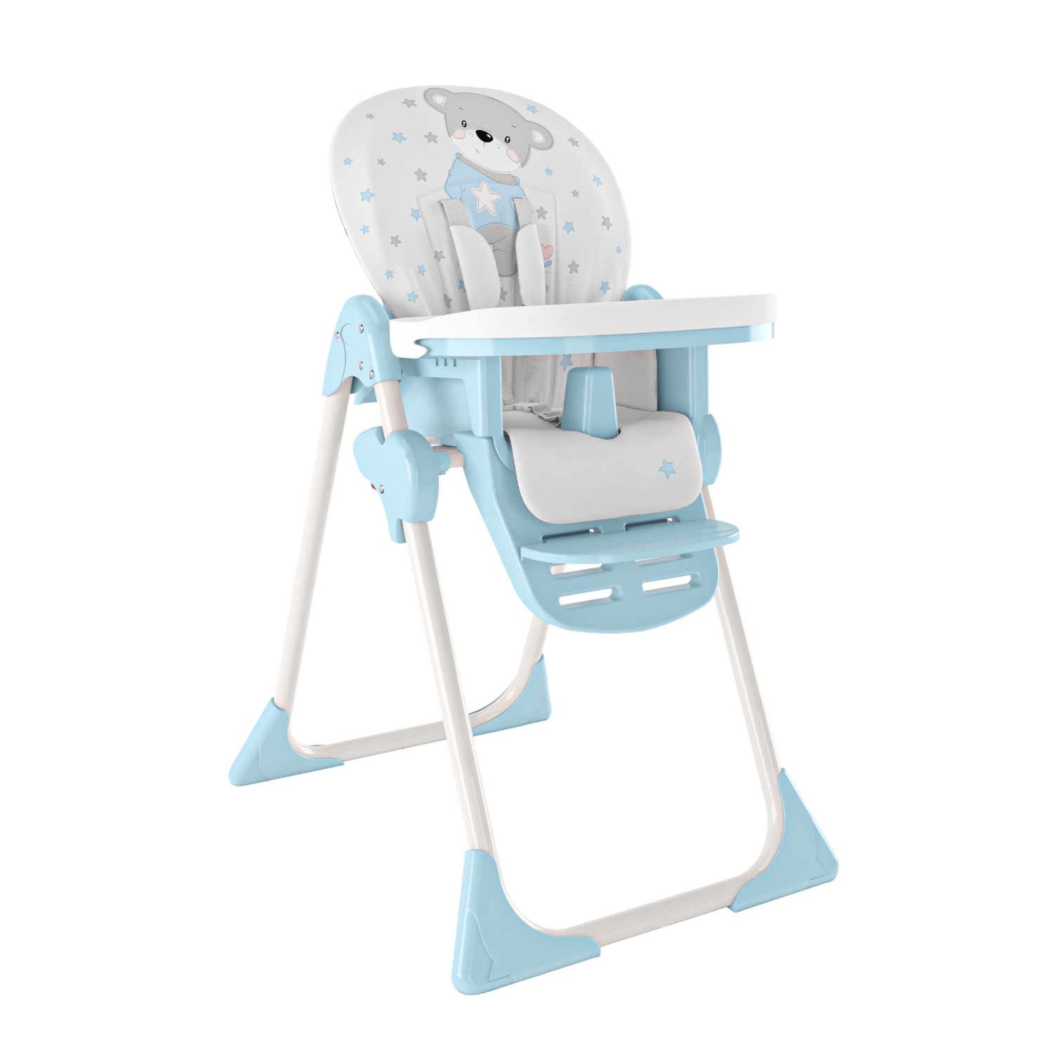 Он регулируется по высоте в пяти положениях – удобно опускается вниз по передней стороне крепкой металлической опоры. Это позволяет посадить ребенка к столу вместе со взрослыми или опустить кресло на комфортный уровень, чтобы ребенок мог забираться туда самостоятельно. Трехточечные ремни безопасности соединяются в надежном замке. Пластиковый упор между ножек является дополнительным средством защиты подвижного малыша и не позволит сползти вниз.