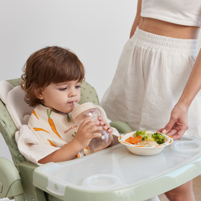 Для удобства ребенка стул имеет регулировку наклона спинки, подножки и регулировку по высоте. Большой столик имеет съемный поднос и подставку для телефона или планшета. Стульчик удобно использовать не только для еды, но и для занятий и игр с ребенком. Модель максимально мобильна за счет 4 поворотных колес с блокировкой. При необходимости стульчик компактно складывается и не занимает много места.