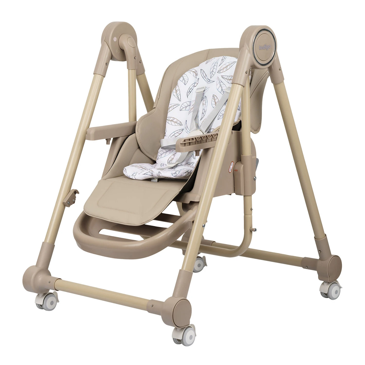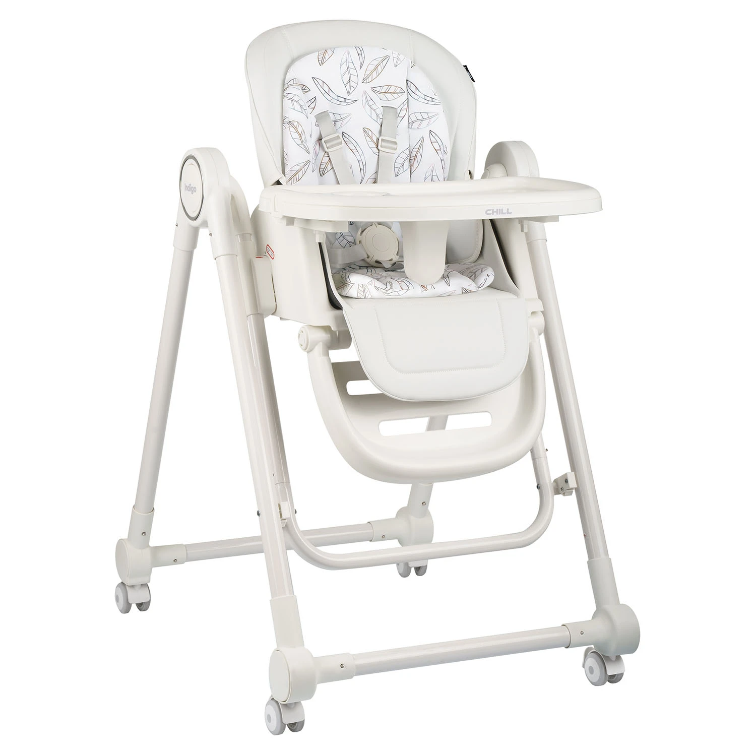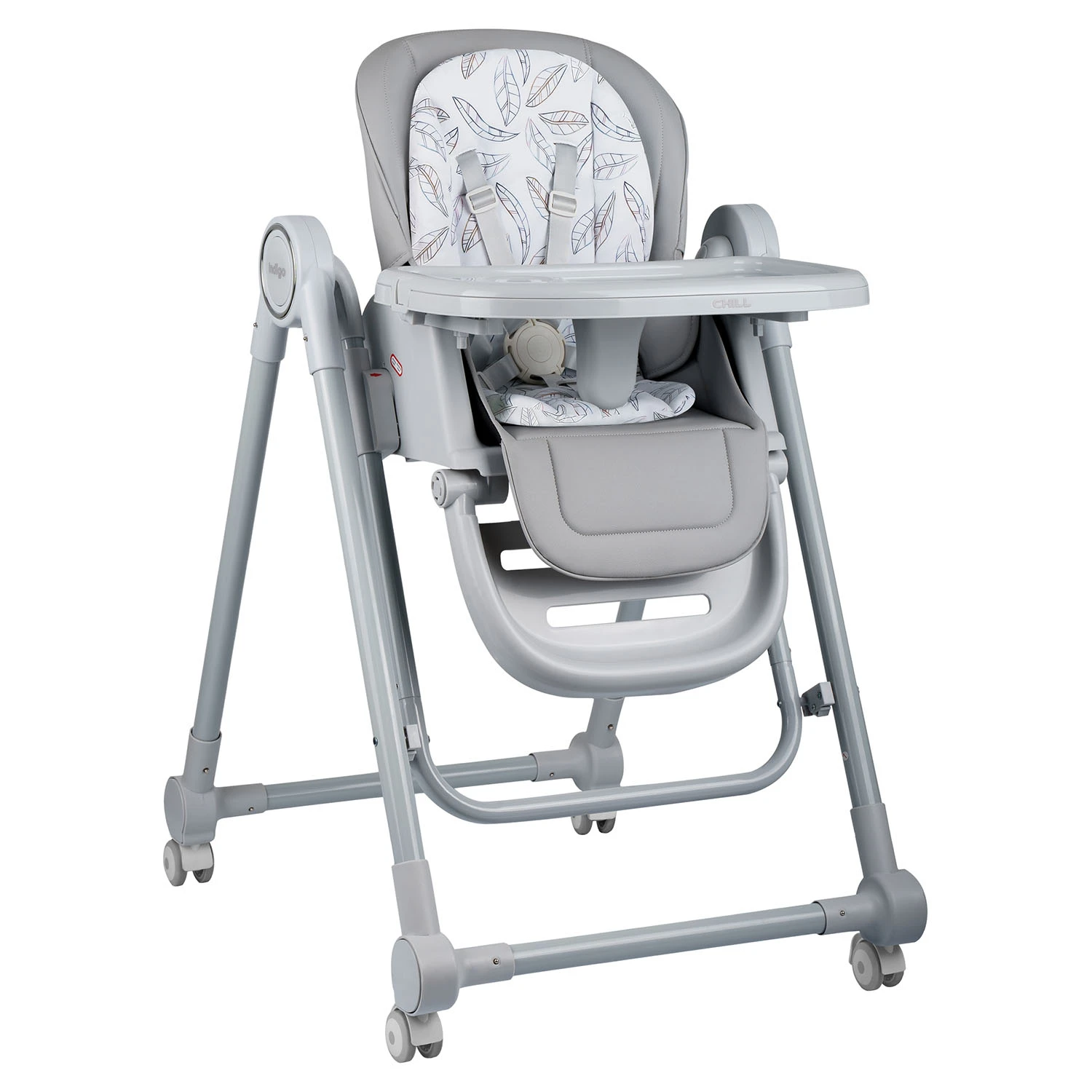 Стул для кормления Indigo CHILL (индиго чилл) - практичный и недорогой стульчик для ребенка от 6 до 36 месяцев. Стульчик легко адаптируется под разные этапы взросления ребенка и удобен в использовании. Стульчик можно использовать с колесиками и без.