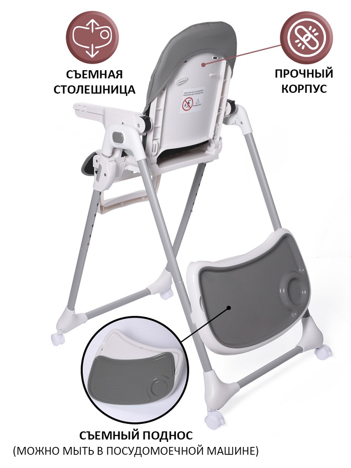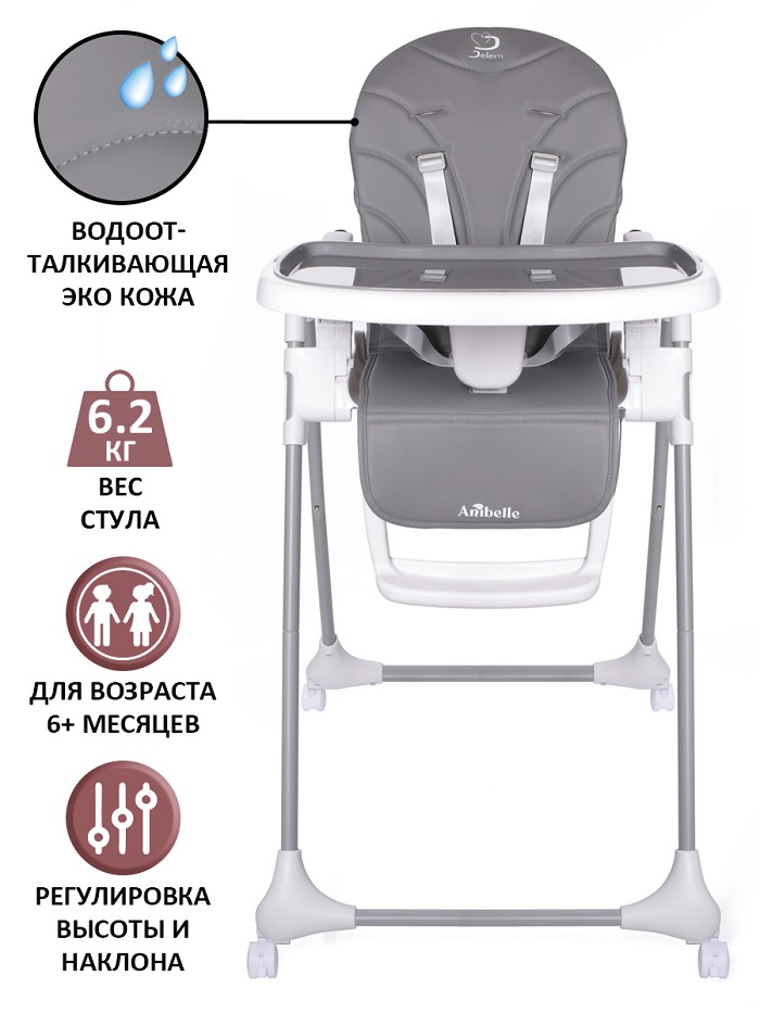 Стул для кормления Jetem Anibelle (Жетем Анибель) - практичный и недорогой стульчик для кормления ребенка от 6 месяцев. Его особенность в простоте и удобном функционале. Практичная обивка из эко кожи легко вытирается после еды, а при необходимости снимается для стирки. Ремешки безопасности регулируются под рост ребенка, что позволит использовать стульчик долго. Для удобства кормления предусмотрен съемный столик с подносом. Поднос можно мыть в посудомоечной машине. Стульчик регулируется по высоте, наклону спинки и наклону подножки. Стульчик оснащен 4 съемными колесами, которые можно снять при необходимости.