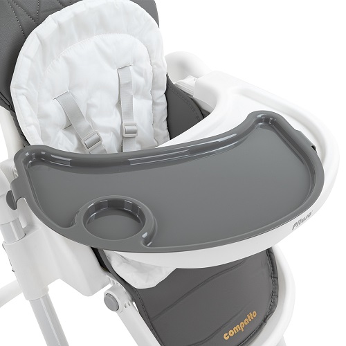 Новая модель оснащена 4 колесами, что делает его невероятно мобильным. Легко передвигать по кухне, можно использовать в комнате. Множество регулировок стульчика по высоте, наклону спинки и подножки позволят настроить стульчик максимально удобно для ребенка и его родителей. Благодаря съемному столику с дополнительным подносиком за стульчиком можно кушать, играть, заниматься. Удобный наклон спинки позволит отдыхать между играми или после еды.