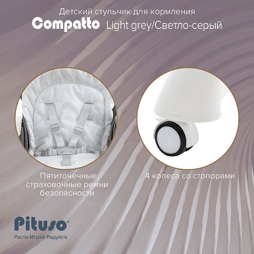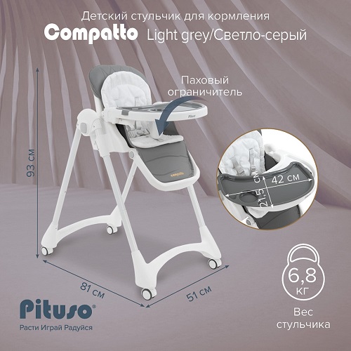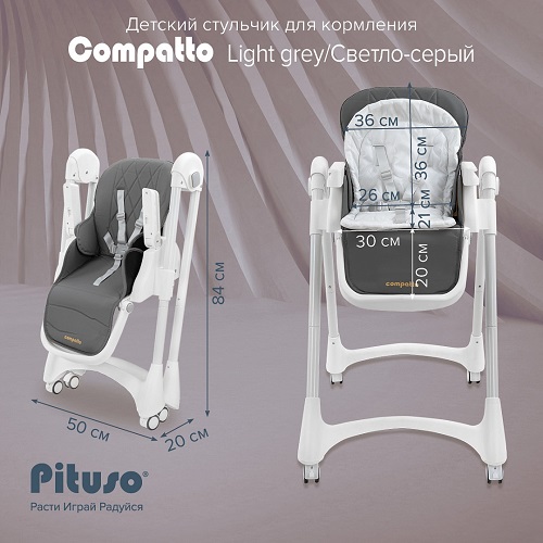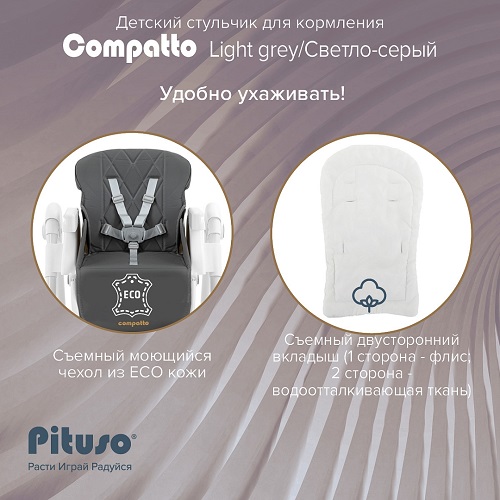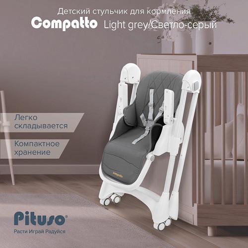 Стул для кормления PITUSO Compatto new (Питусо Компатто новая) - новое исполнение полюбившегося стульчика для ребенка от 6 месяцев до 4 лет. Отличный функционал и исполнение за очень приятную цену.