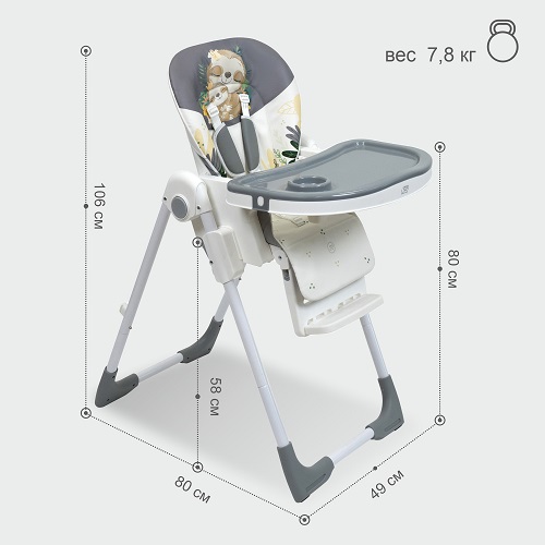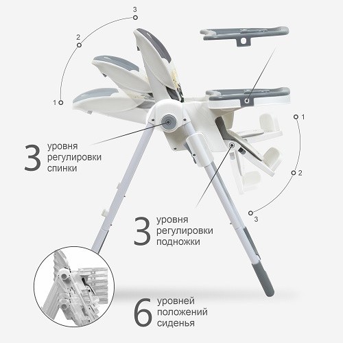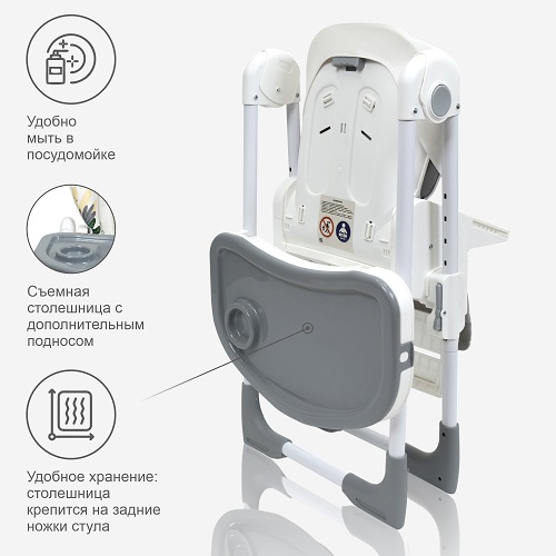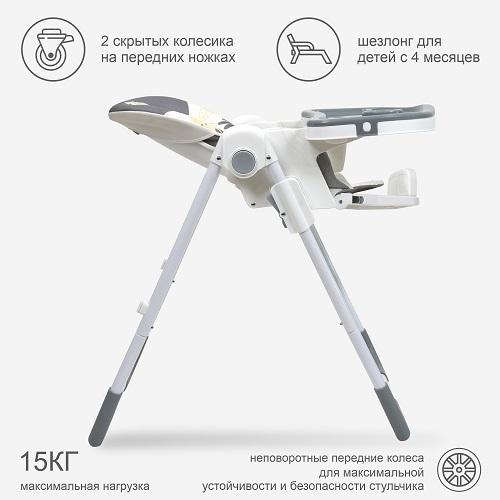 В комплекте: стул для кормления, поднос, мягкий вкладыш.